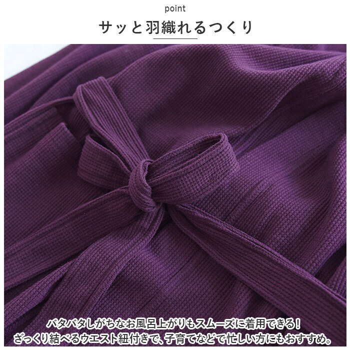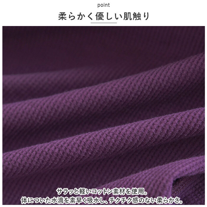 | 商品説明 | ・・お風呂上がりを快適に♪使い勝手抜群のバスローブが新登場。 ・【サッと羽織れるつくり】 ・バタバタしがちなお風呂上がりもスムーズに着用できる!ざっくり結べるウエスト紐付きで、子育てなどで忙しい方にもおすすめ。 ・【柔らかく優しい肌触り】 ・サラッと軽いコットン素材を使用。体についた水滴を素早く吸水し、チクチク感のない柔らかさ。 ・【ロングシーズン活躍】 ・ボリュームを抑えたデザインなので、ストレスフリーな着用感。シーズンレスで使えるアイテム。 ・【便利なポケット付き】 ・左右に配置されたポケットには、スマホや保湿クリームなどをIN。 ・【選べるカラー&サイズ】 ・ユニセックス仕様のカラー&サイズ展開。ご家族色違いで揃えて、リラックスタイムのお供に。 |