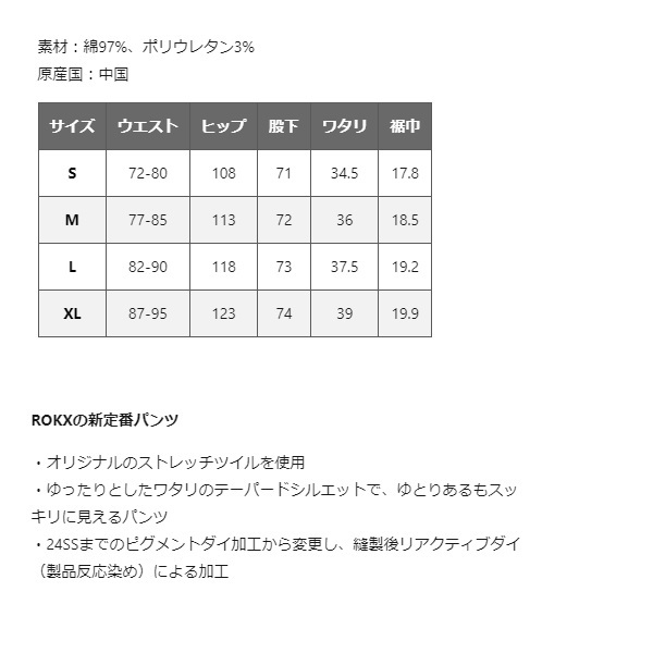 XL:ウエスト87-95 ヒップ123 股下74 ワタリ39 裾幅19.9(cm)