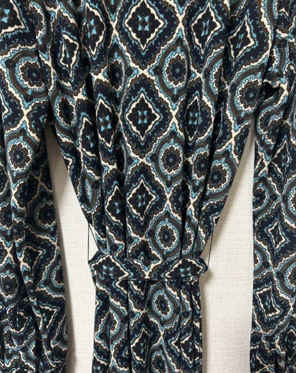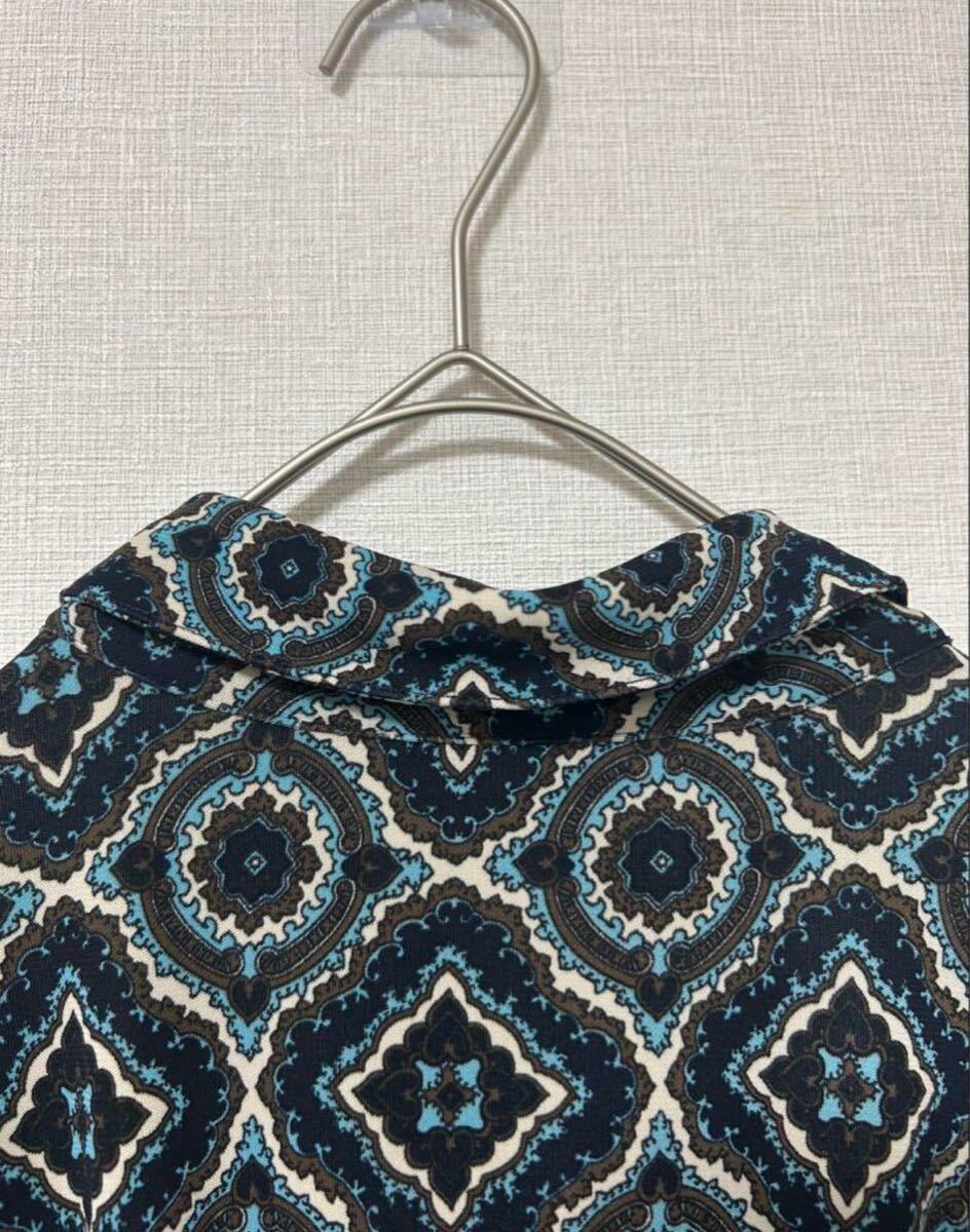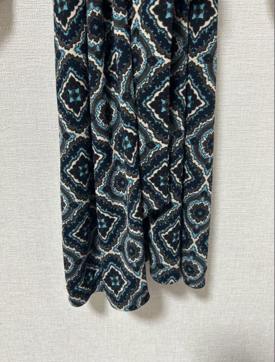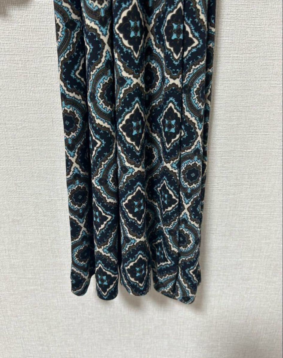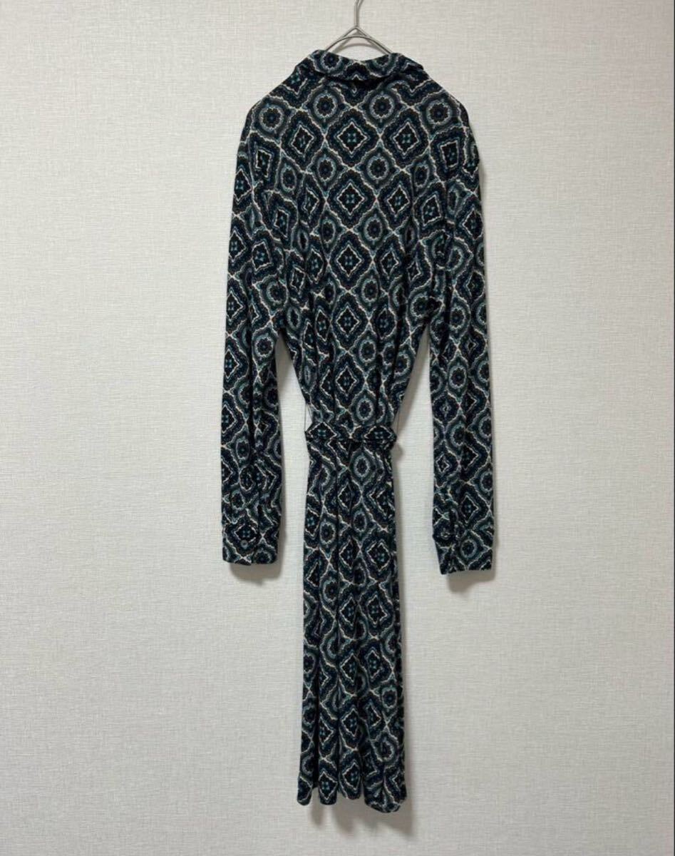 幾何学模様が特徴のネイビー系ワンピース、サイズ12P。