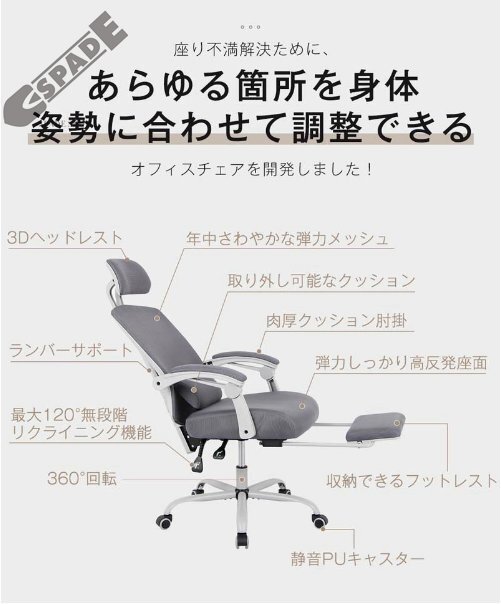 • 10.【腰を支えるサポートバー】腰部分のサポートバーで、長時間の作業でも腰や背中が疲れにくい。11.【調節可能ヘッドレスト】高さ調整ができる曲線ヘッドレストは、頭をふわっと優しくキャッチ、頭部や首部の疲労を解除されます。