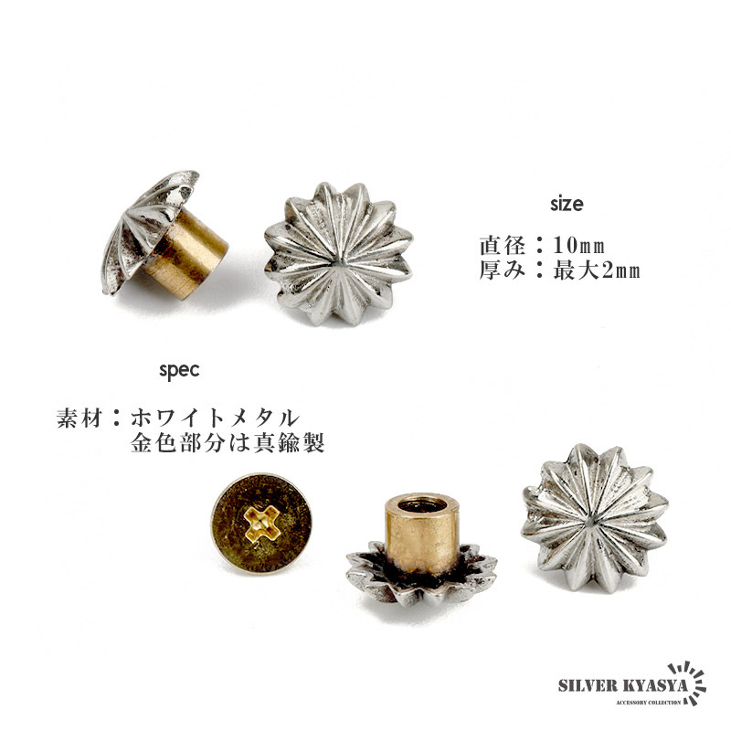 アポロ ビーズ コンチョ 2点 太陽神 飾りボタン ねじ式 財布 ウォレット スマホケース レザー ハンドメイド カスタム パーツ