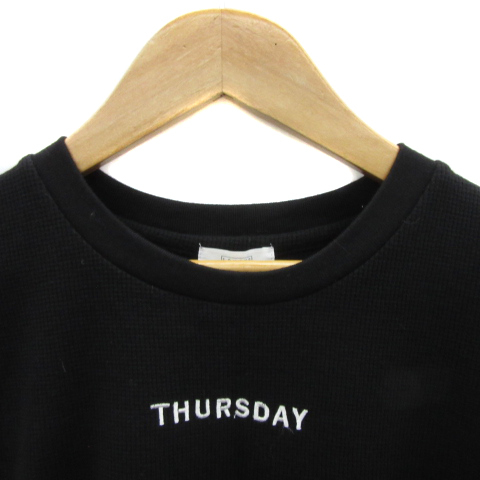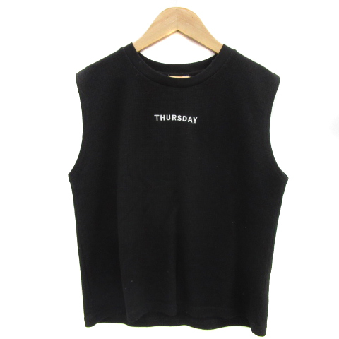ローリーズファーム LOWRYS FARM カットソー ノースリーブ ラウンドネック 刺繍 ワッフル F 黒 ブラック 白 ホワイト /YS28 レディース