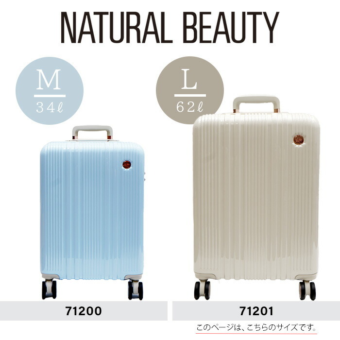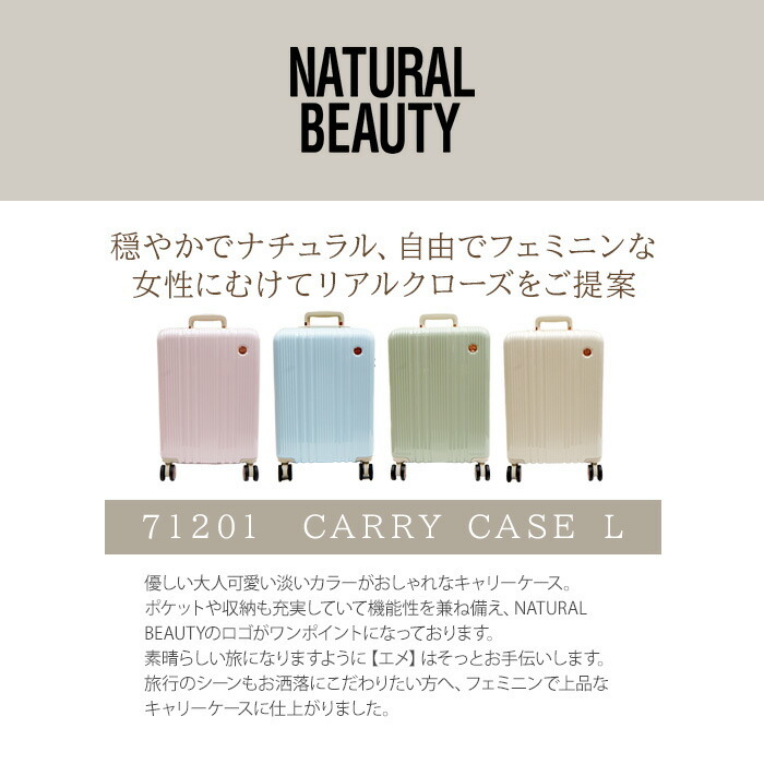 商品名 | 71201【07.グリーン】スーツケース 62-70L [NATURAL BEAUTY] [ナチュラルビューティー] |