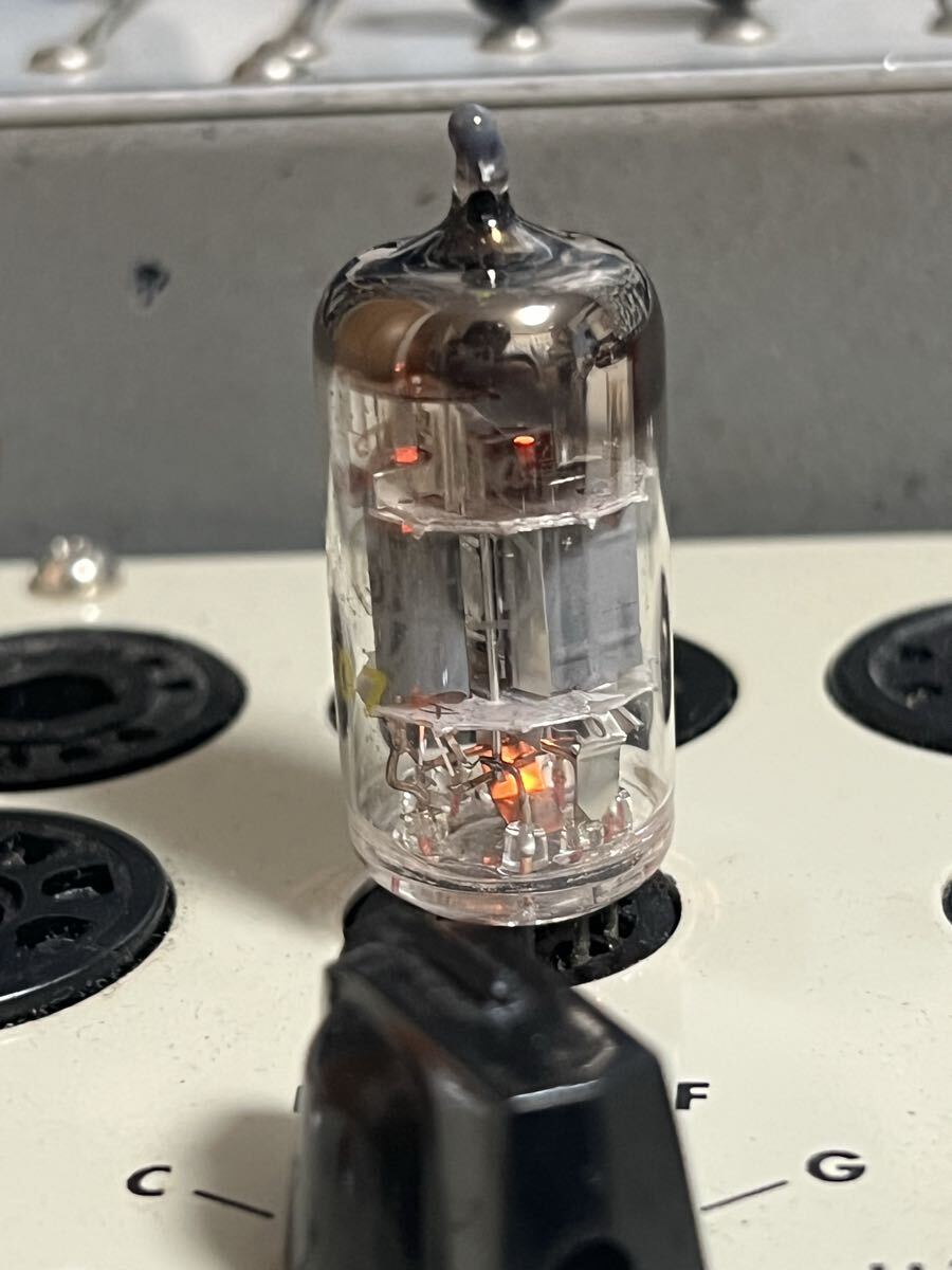 手持ちの真空管試験機(エミッション測定)で全数検査し