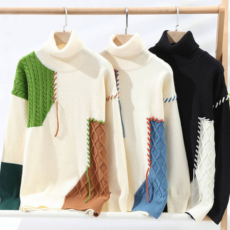 ・個性的なデザイン:タートルネックとバイカラーの切り替えデザインが特徴的で、周囲と差がつくファッション性の高い仕上がり。