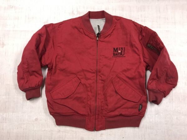 ミニ バツ MINI BA-TSU レトロ アメカジ スポーツ リバーシブル MA-1型 中綿 フライト ジャケット キッズ ナイロン×カットソー 120 赤