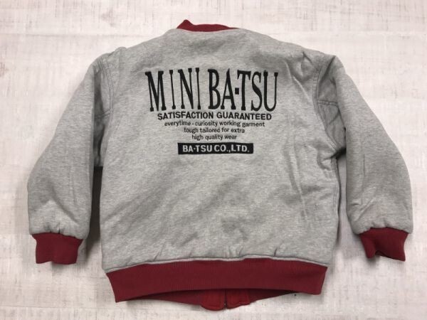ミニ バツ MINI BA-TSU レトロ アメカジ スポーツ リバーシブル MA-1型 中綿 フライト ジャケット キッズ ナイロン×カットソー 120 赤 です。