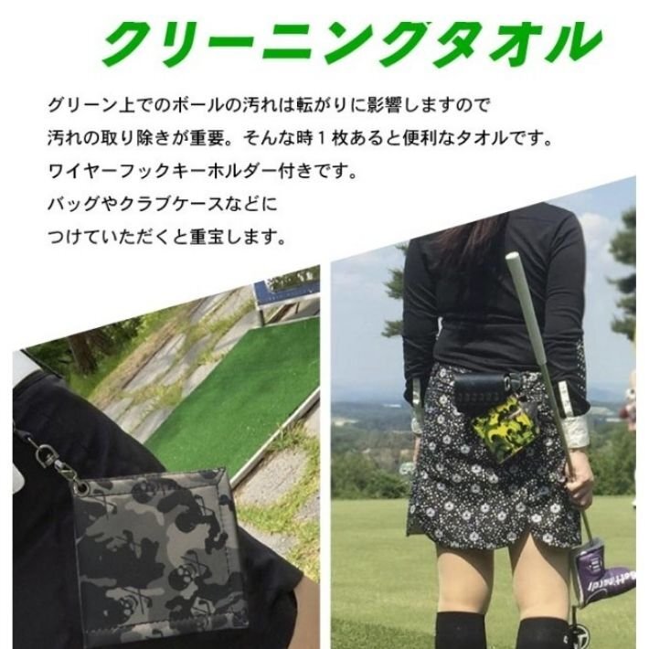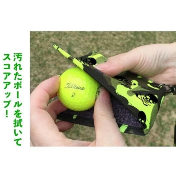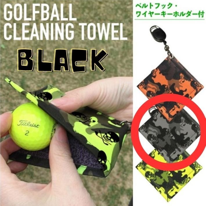ゴルフ ボール拭き ブラック ゴルフボール タオル スカル 迷彩 カラビナ ワイヤー付き 2WAY クロス マイクロファイバー デザイン ボール | |