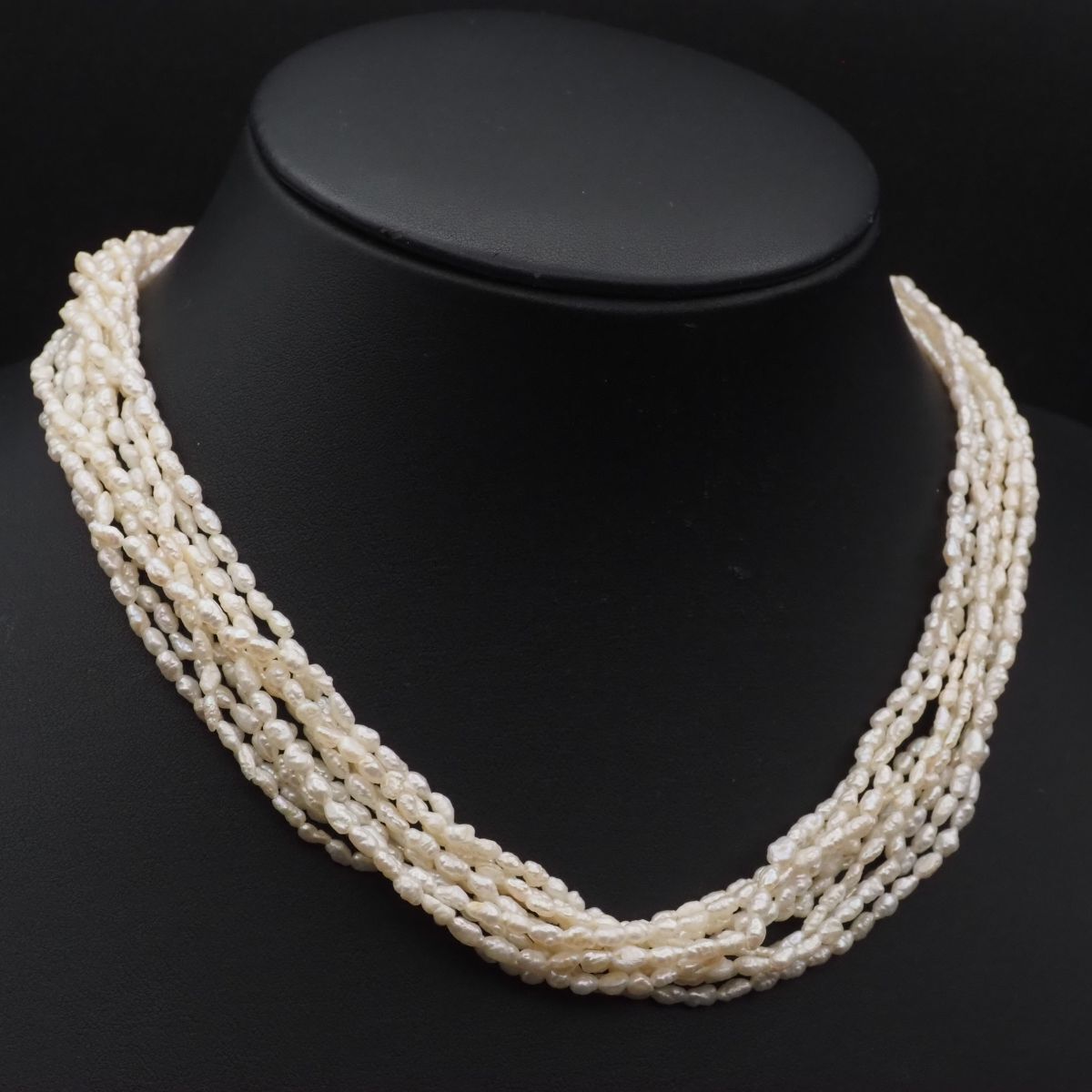 F110 淡水真珠 パール SILVER刻印 ネックレス 10連 デザイン シルバー 6月誕生石