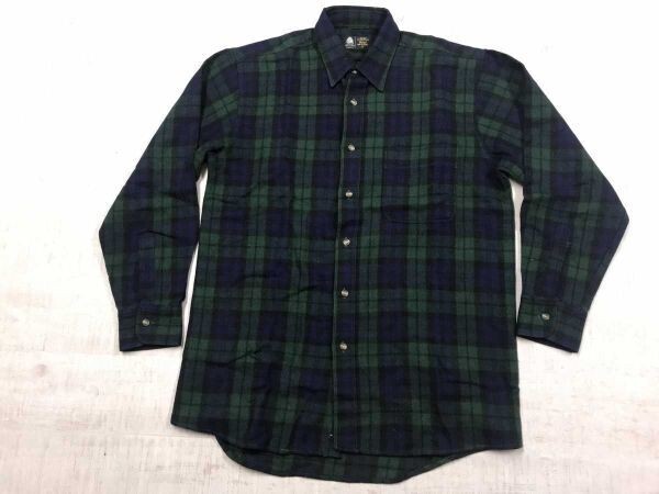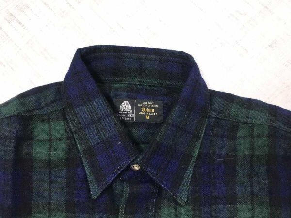 ボラント Volunt オールド レトロ 90s 韓国製 古着 ウール100% 長袖 ブラックウォッチ チェック フランネル シャツ メンズ M 紺 です。