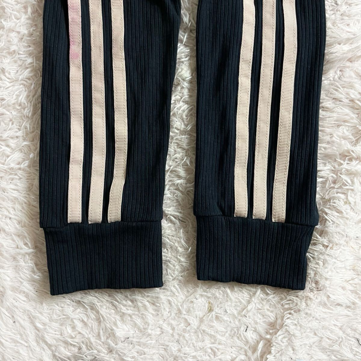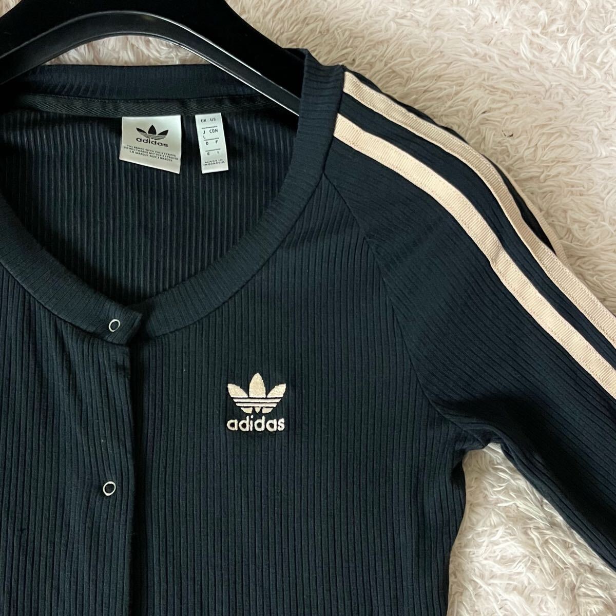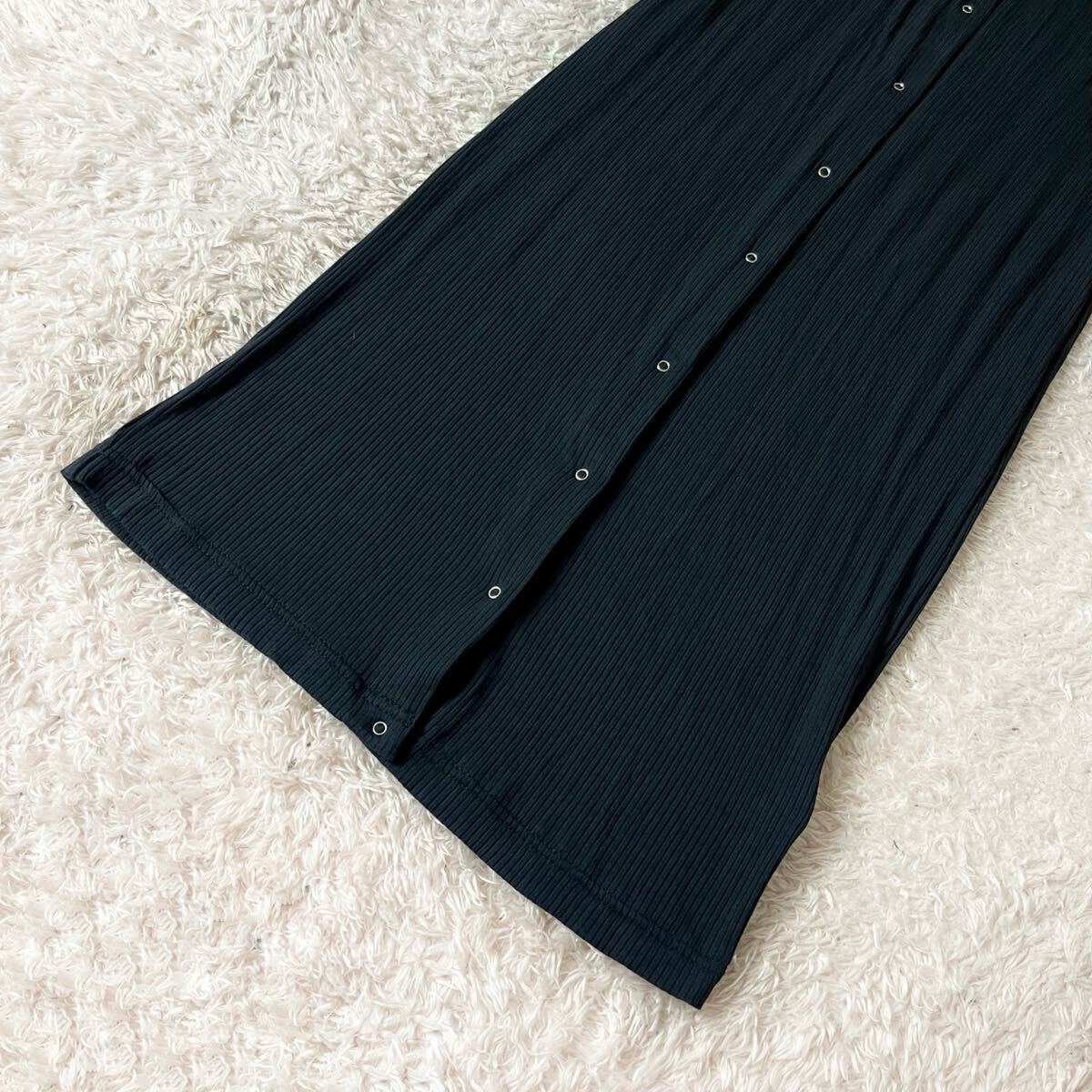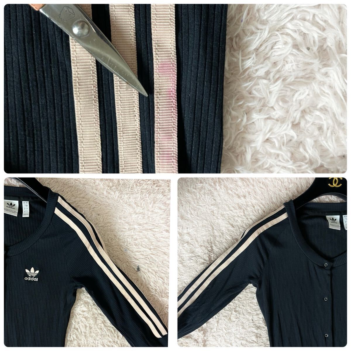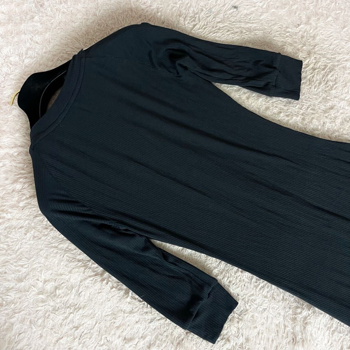 adidas アディダス ロングワンピース リブニットワンピース コットン タイト ブランドロゴ刺繍 ワンポイント 3本ライン ブラック 黒 S