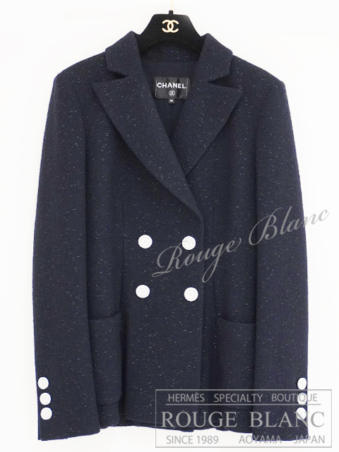 CHANEL ツイードジャケット ネイビー(ラメ入り) #38 19C タグ付 P60276 【未使用品】