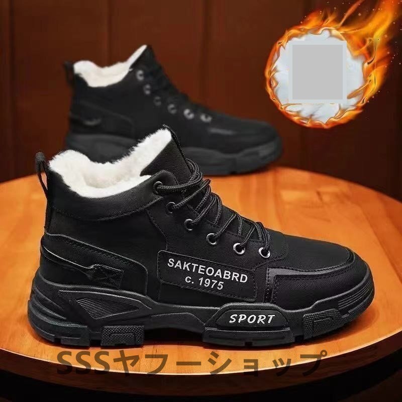 大人気新品特売 冬 ショートブーツ メンズ スノーブーツ ワークブーツ 防寒靴 ミリタリーブーツ 裏起毛 保温 冬靴サイズ選択可黒