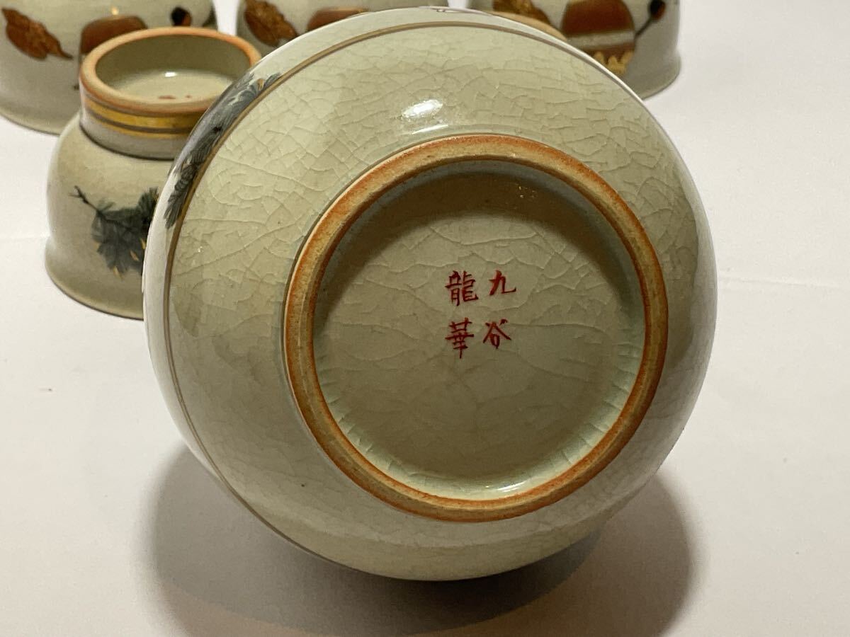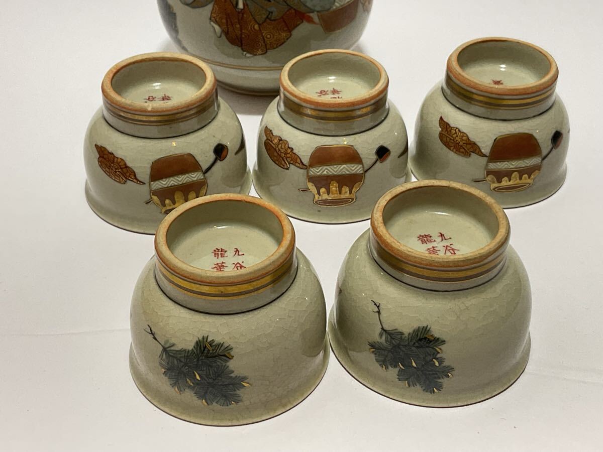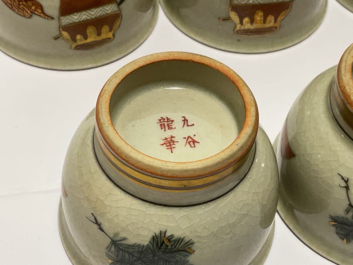 九谷焼 龍華堂 時代盃 6点 酒器 ぐい呑み  酒器セット 盃 徳利 お猪口 時代 現状品