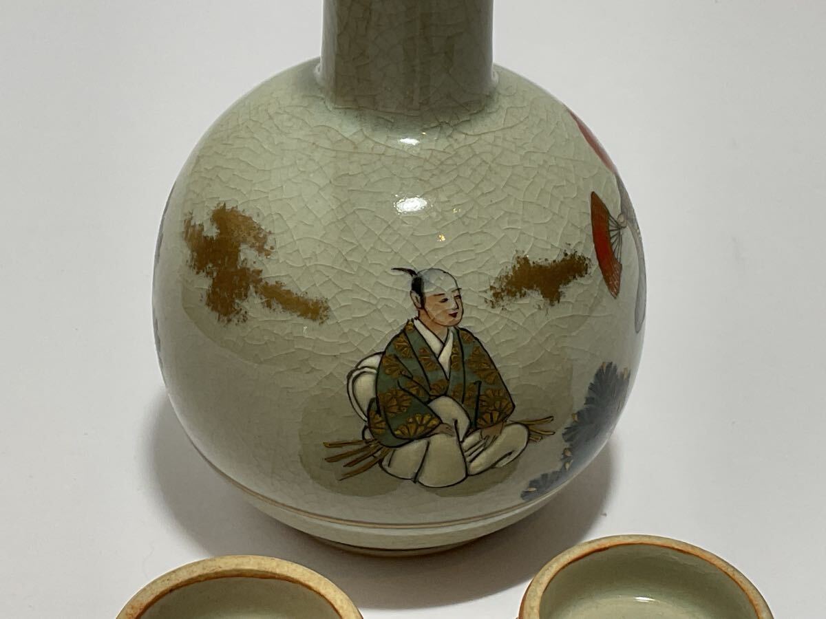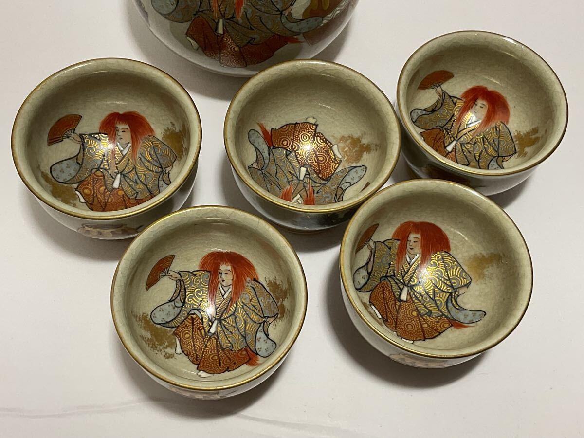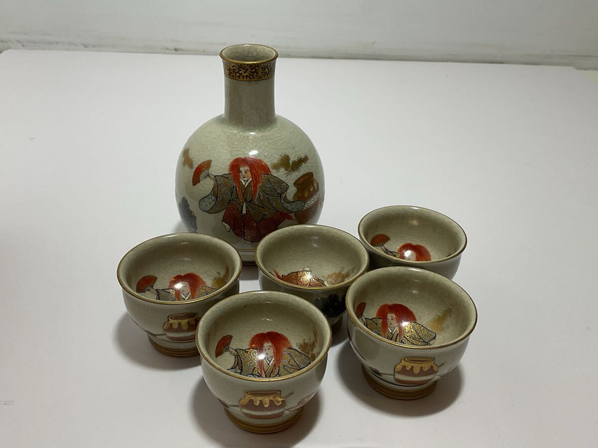 九谷焼 龍華堂 時代盃 6点 酒器 ぐい呑み  酒器セット 盃 徳利 お猪口 時代 現状品