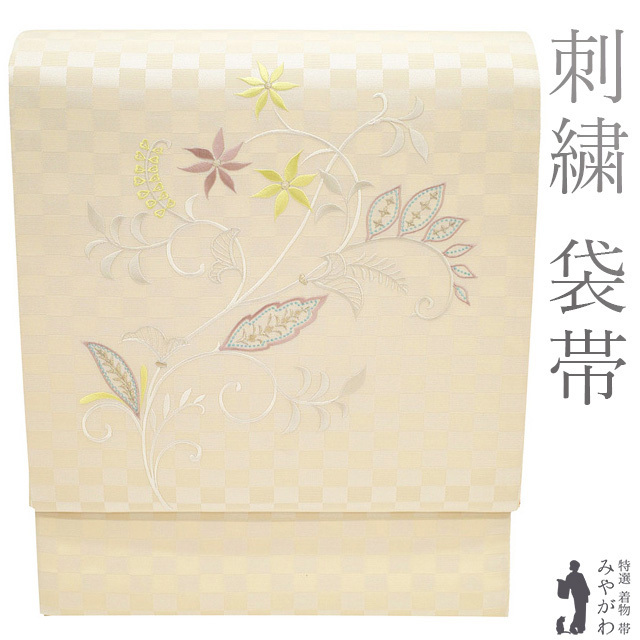 西陣製の刺繍の施されたとても素敵な 袋帯 (仕立て上がり品) のご紹介です。