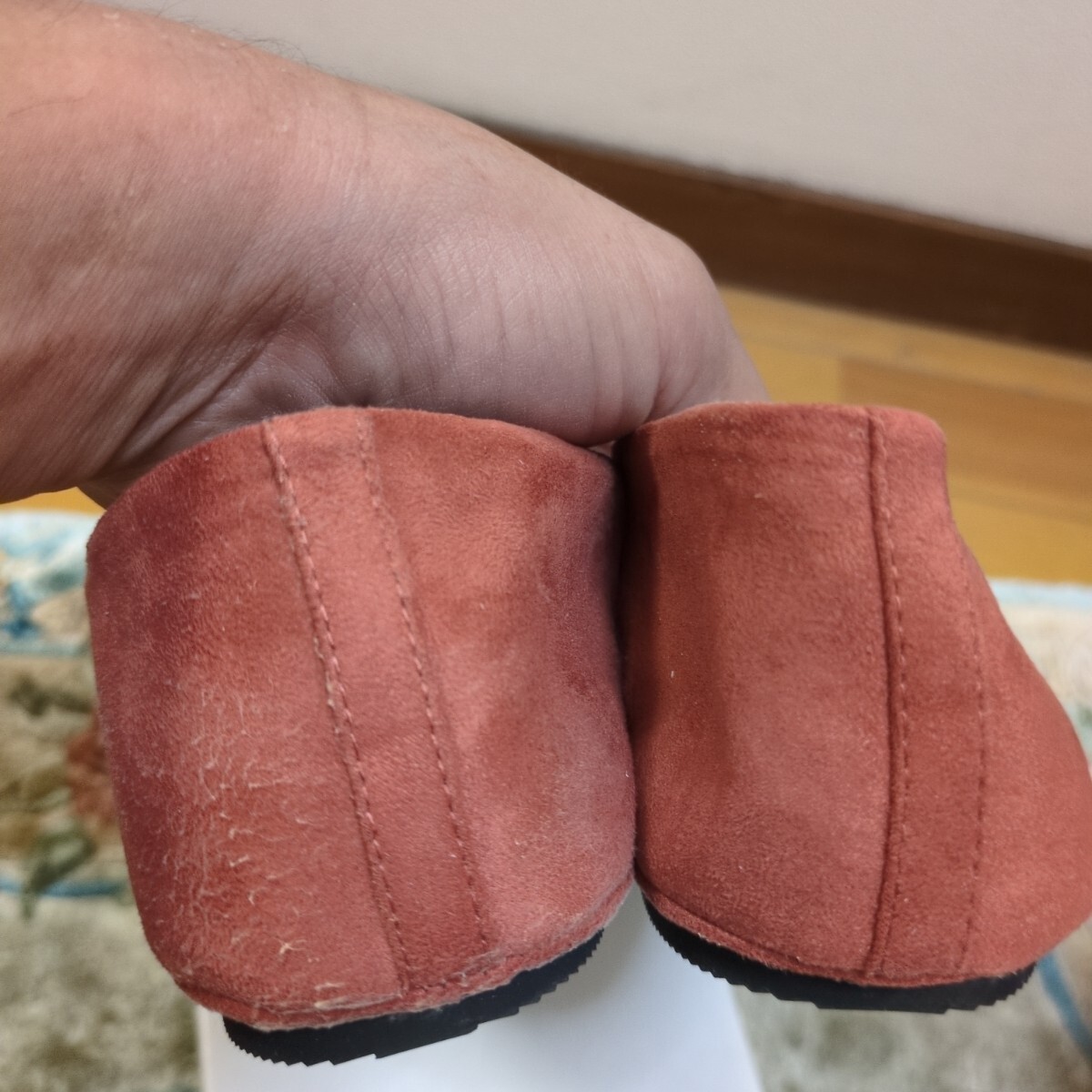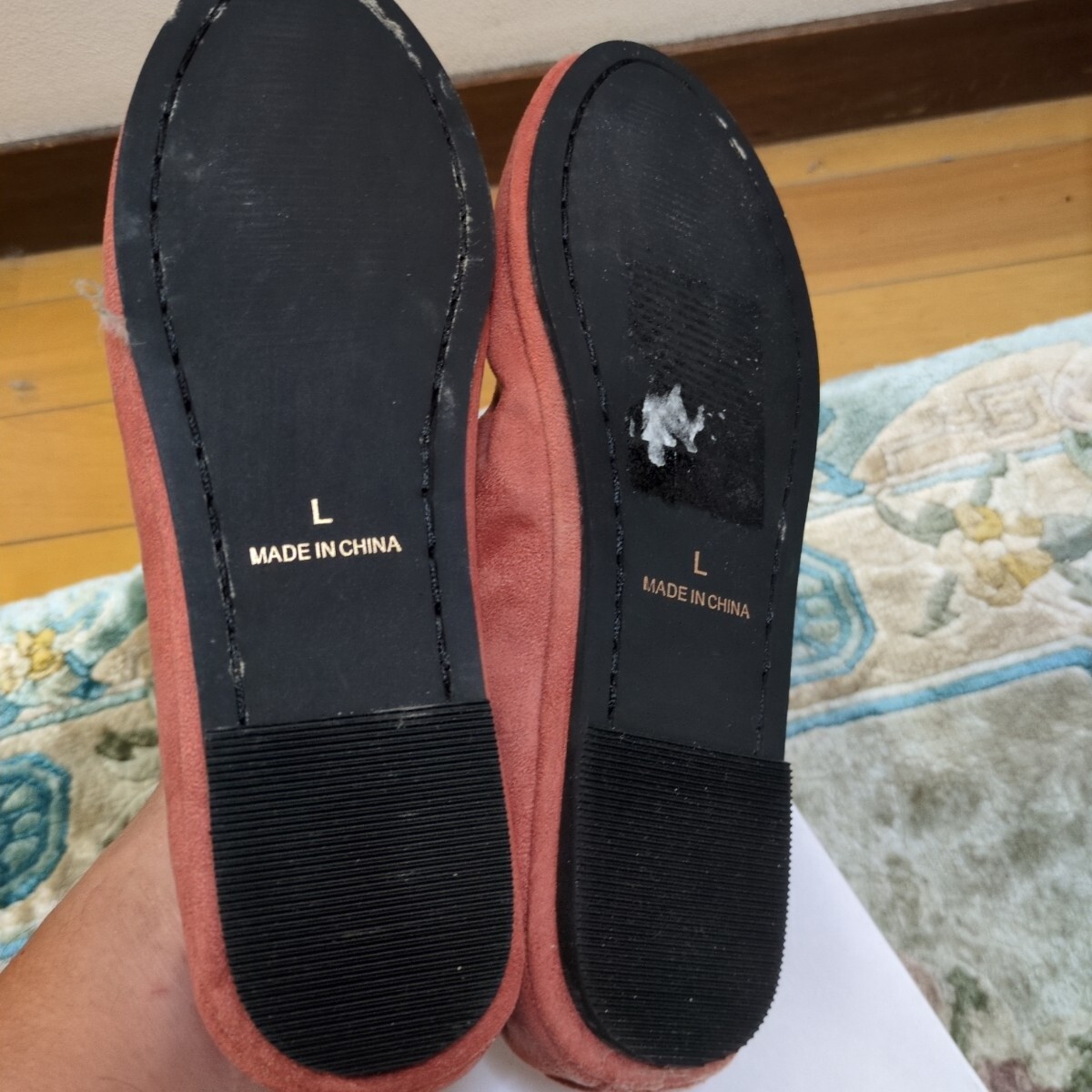 ソールの白い物は紙を剥がした時に残った物になります。箱は無しにて発送させて頂きます。