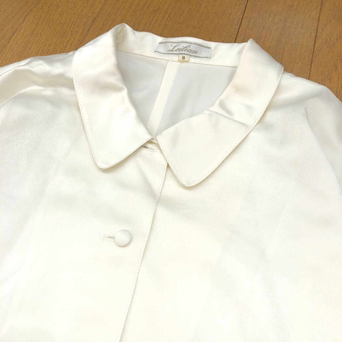 Leilian レリアン ドルマンスリーブ サテン ブラウス 9(M) 白系 オフホワイト シャツ 長袖 国内正規品 レディース 婦人
