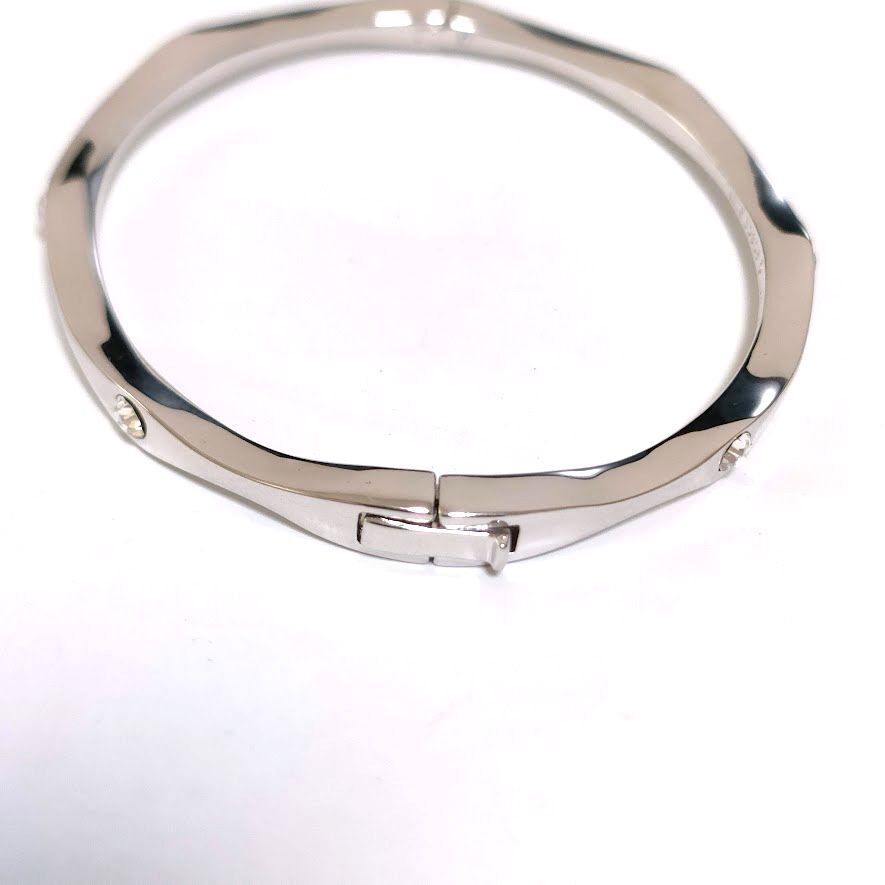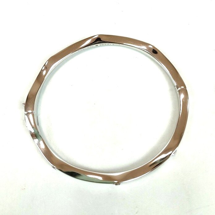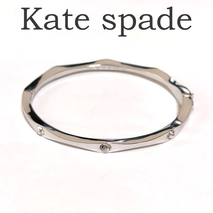美品 Kate spade ケイトスペード ブレスレット バングル シルバー ストーン付き ウエーブデザイン レディース ブランド 中古 腕輪