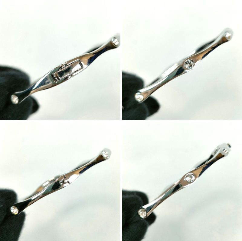 ◆アイテム: ブレスレット バングル シルバー ストーン付き ウエーブデザイン レディース ブランド 中古 腕輪