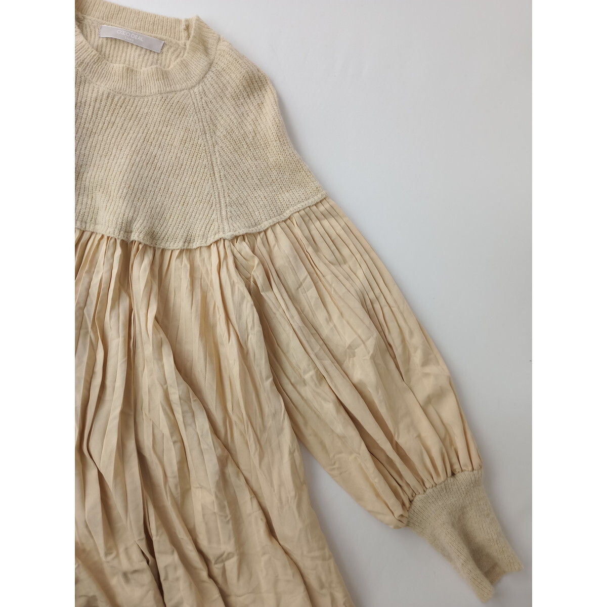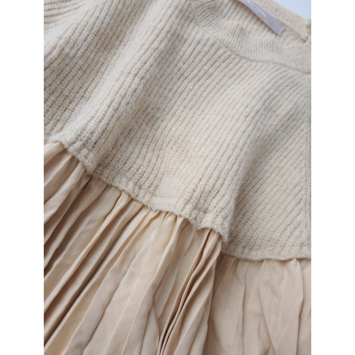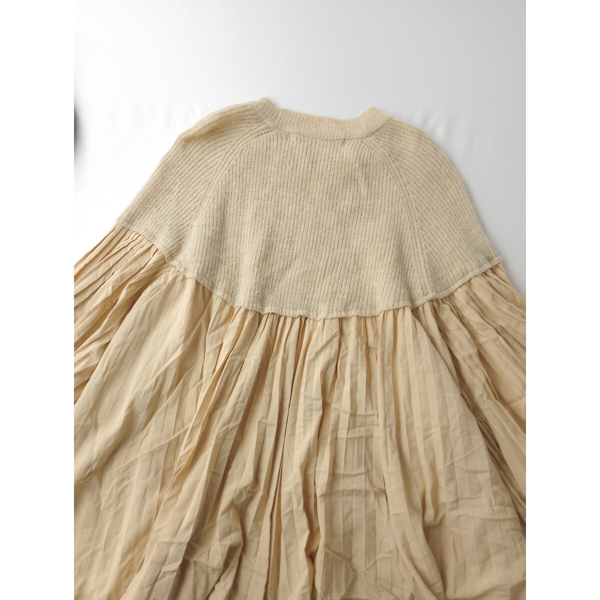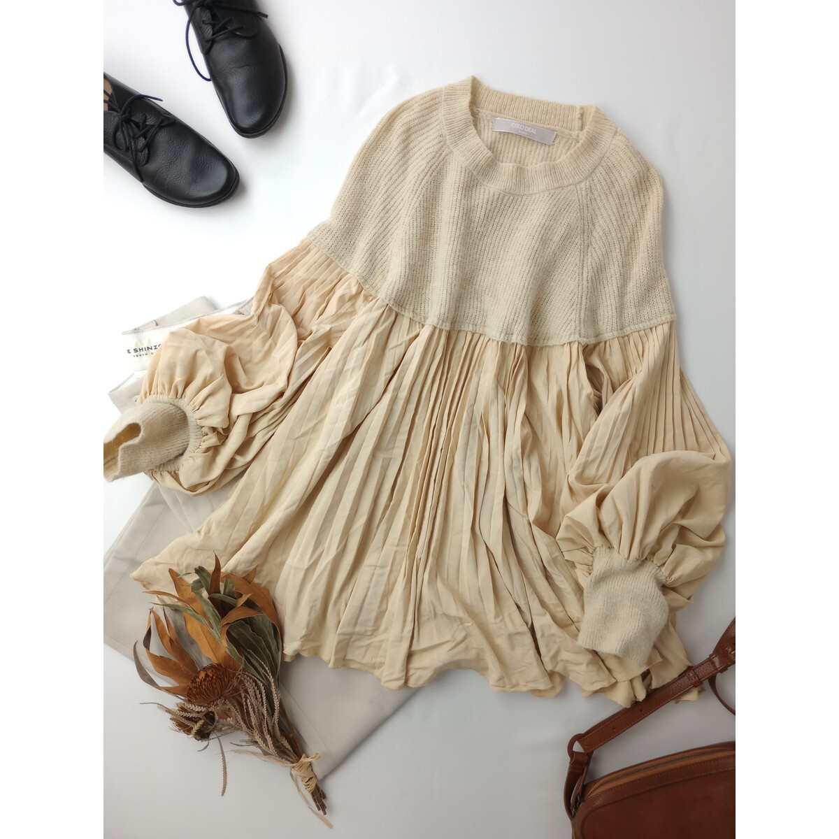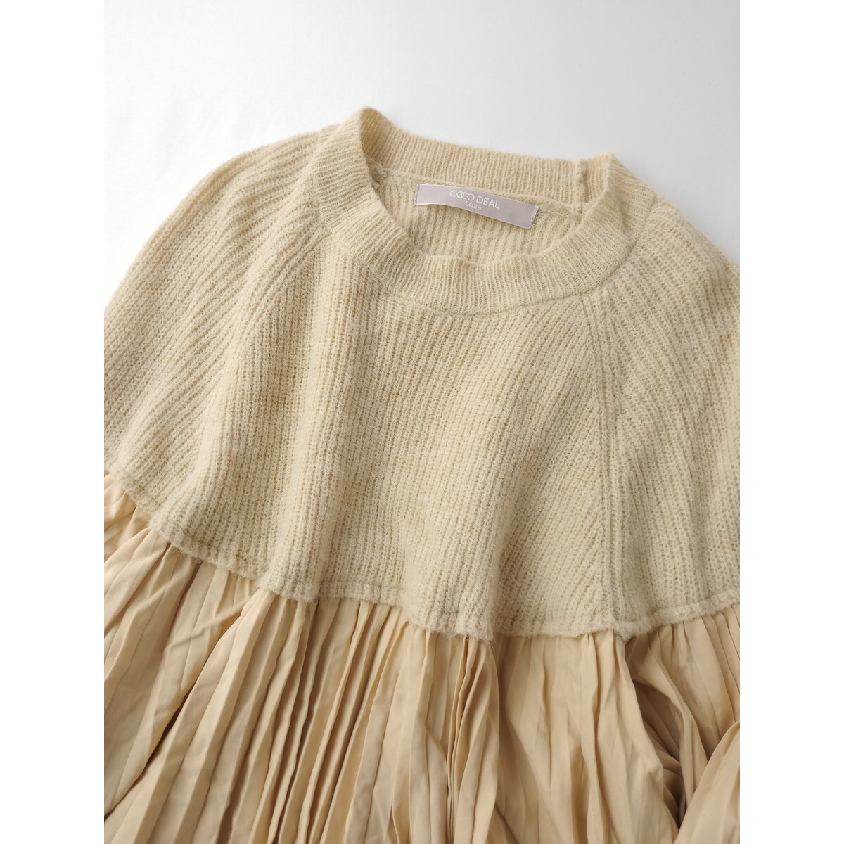 OCODEAL Luxe ココディール リュクス「何だかふわんと愛らしい味わい」異素材 プリーツ ドッキング フレアニット 2 ベージュ(17M+7261)★
