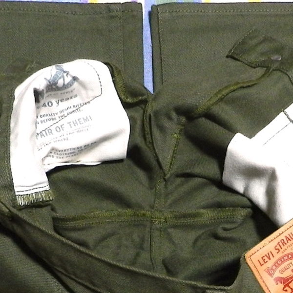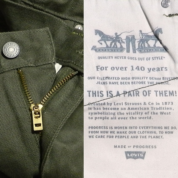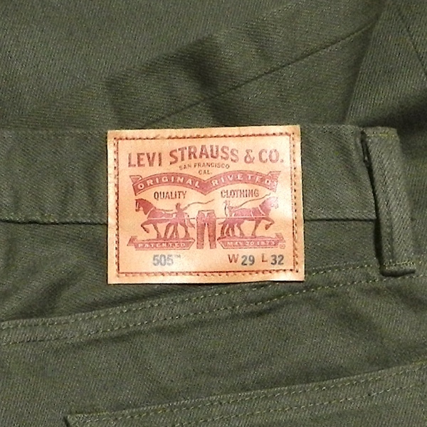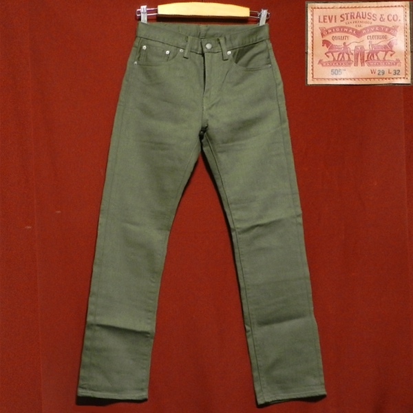 新品 Levi's 505 140周年 ストレート デニム パンツ ジーンズ カラーパンツ 耳付き チェーンステッチ 深緑 カーキ 29 x 32 デッドストック