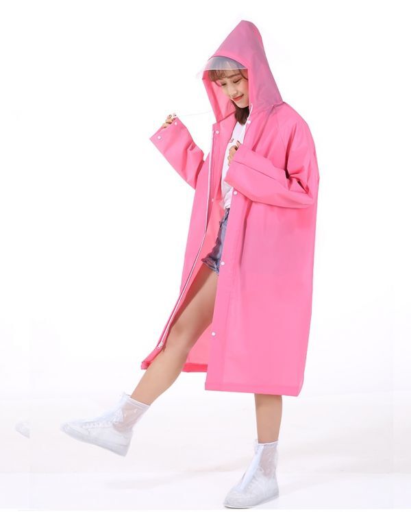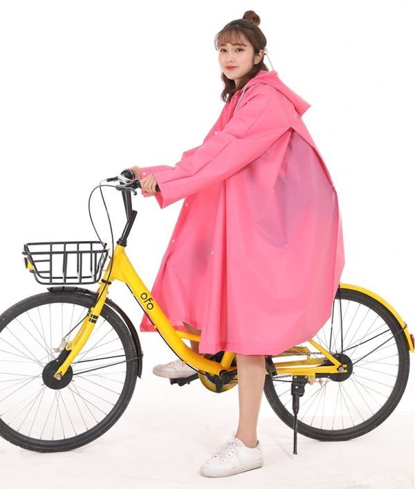 ▼送料無料▼レインコート ロング ピンク サイズM 自転車 バイク ポンチョ レインポンチョ レインウェア レディース メンズ