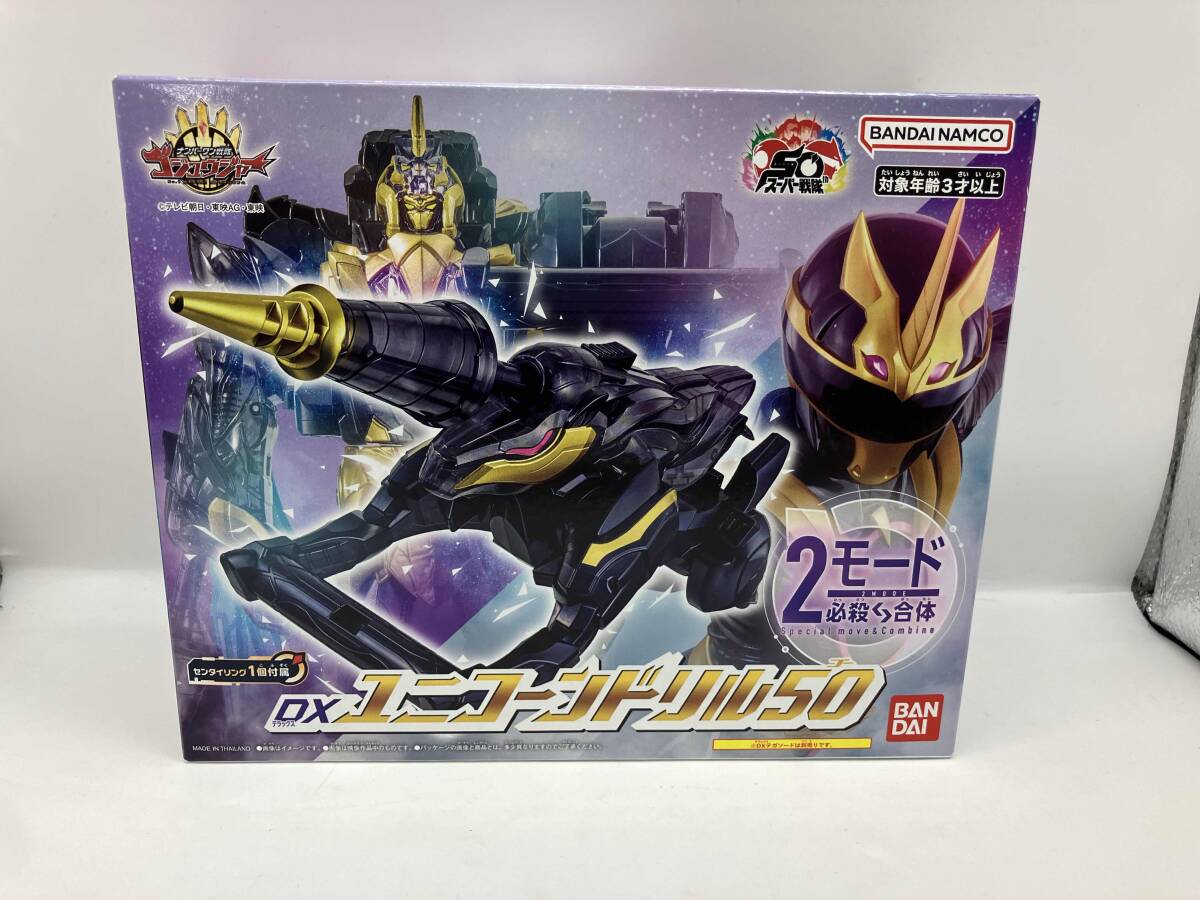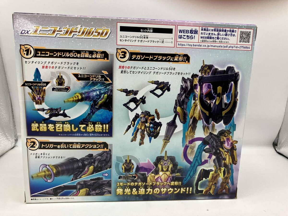【セット内容】ユニコーンドリル50、センタイリング テガソードブラック、※リングパーツ(小)内径約15mm×1個、リングパーツ(大)内径約21mm×1個付属【作品名】[49]ナンバーワン戦隊ゴジュウジャー |
