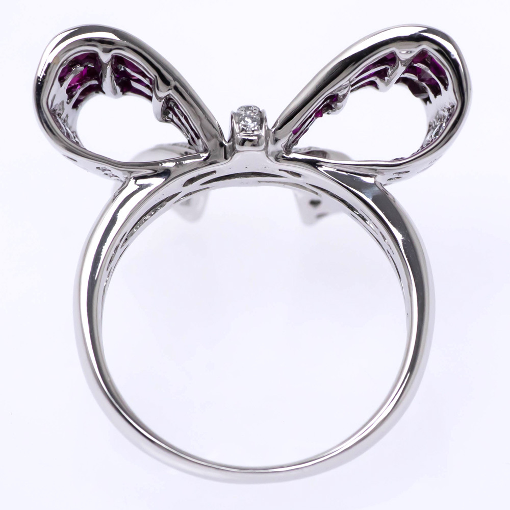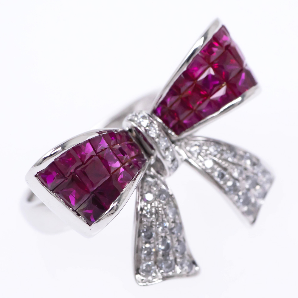 【名東】リング 16号 750 K18WG ホワイトゴールド ルビー 2.45ct ダイヤ 0.90ct 7.7g リボン 指輪 ジュエリー