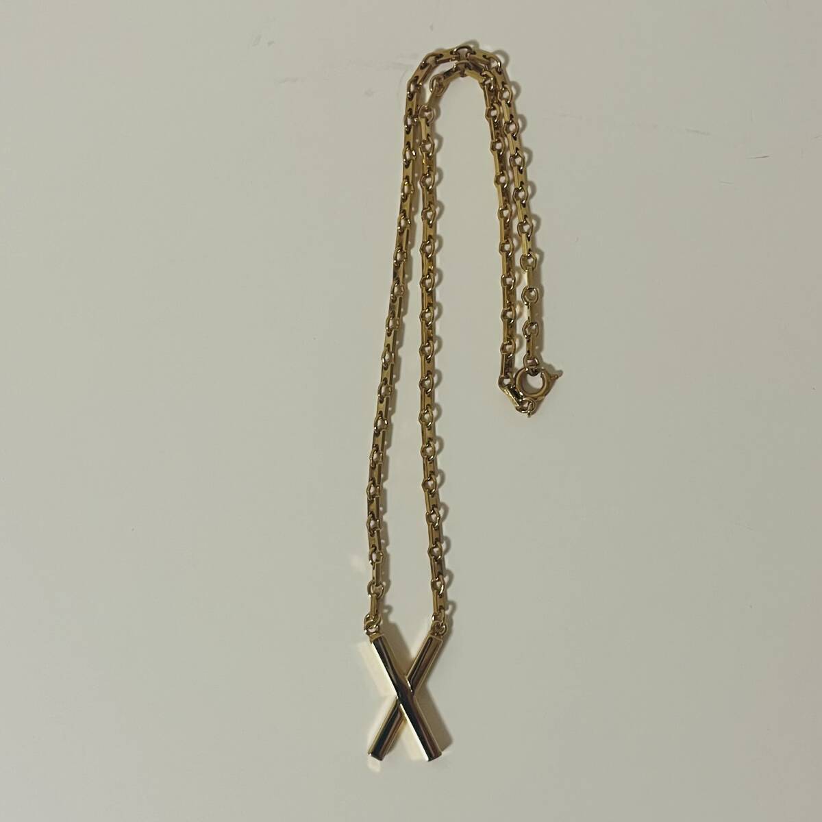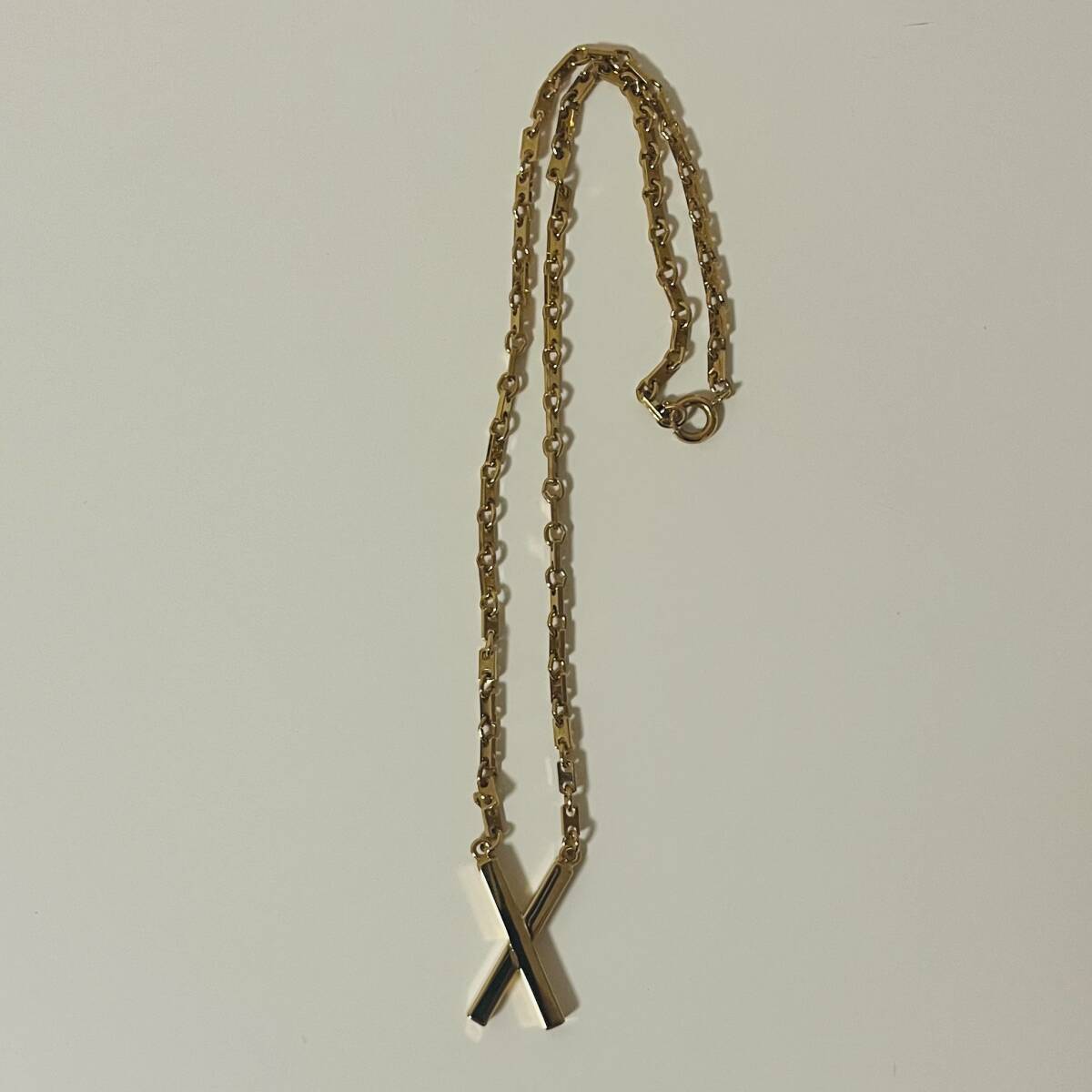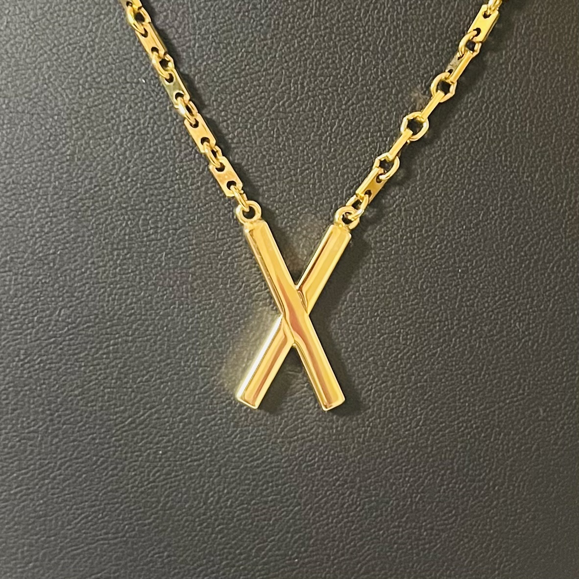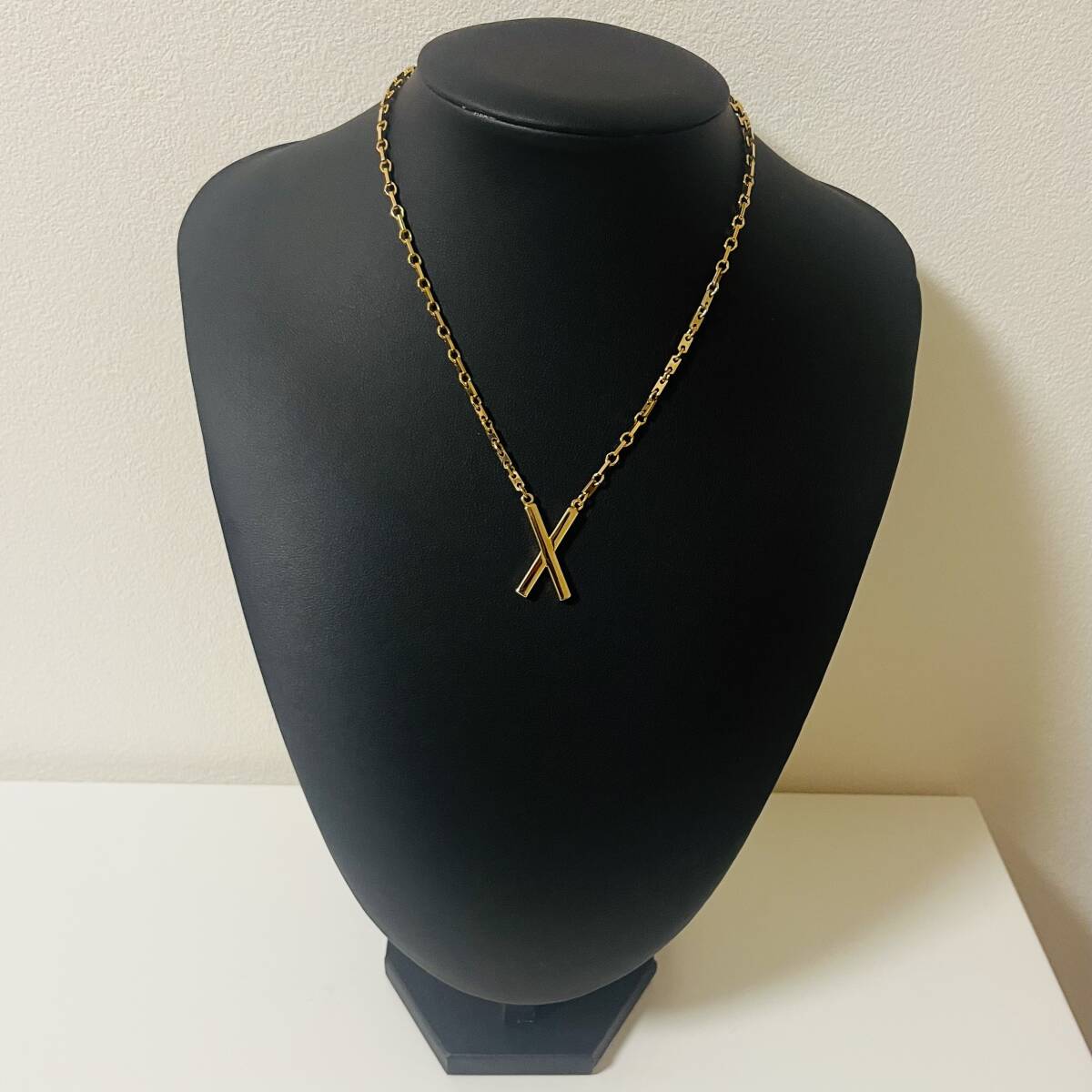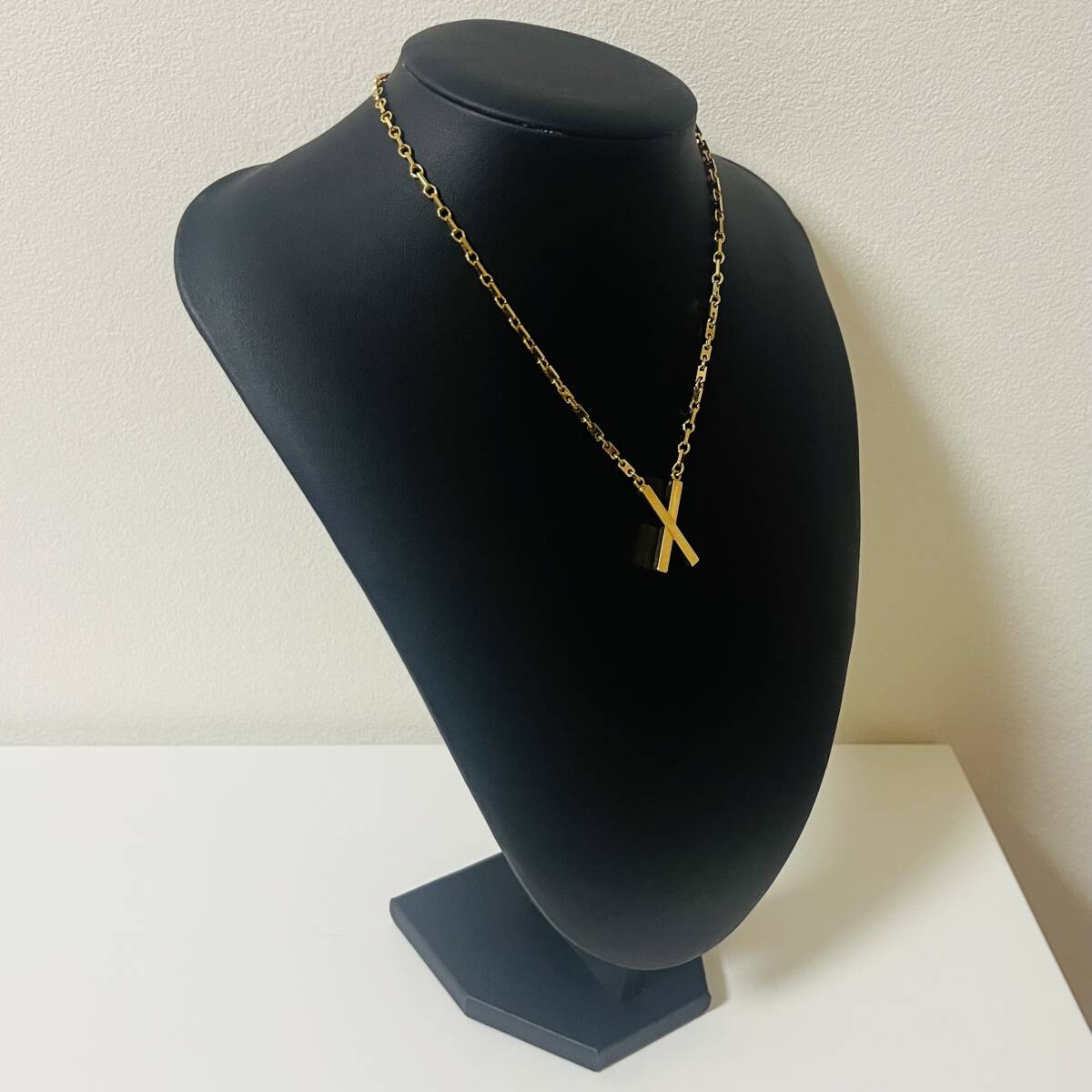 378 アンティーク ビンテージ コスチュームアクセサリー ネックレス 未使用保管品! ゴールドカラー イニシャル X 推し活 海外製