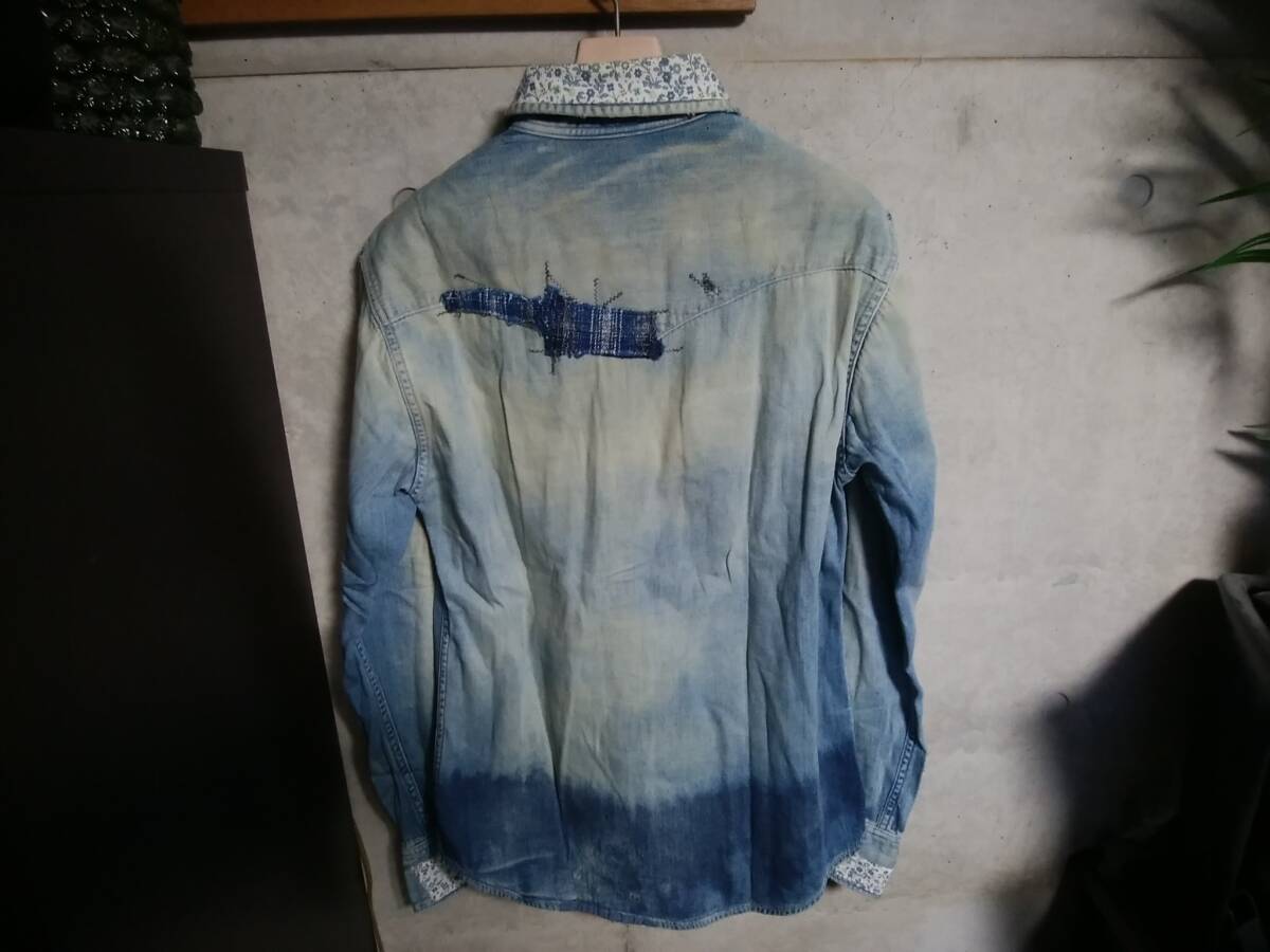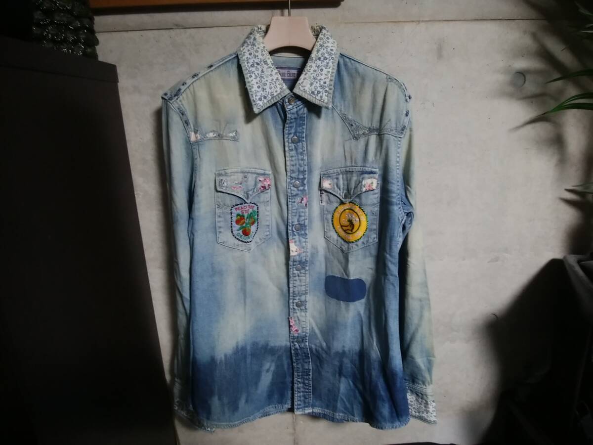 【H.R.MARKET ハリウッドランチマーケット BLUEBLUE ブルーブルー】ウエスタンデニムシャツ2 日本製 フラワーリメイク キムタク着 名作