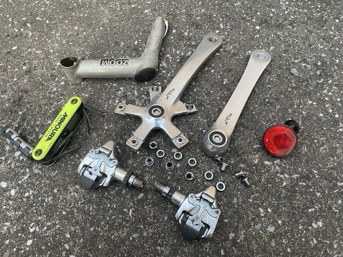 おまけでDura-ace PD-4710のビンディングペダルやXTRクランクセットなど(写真でご確認ください)をつけます。