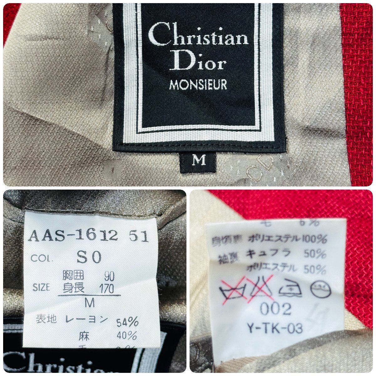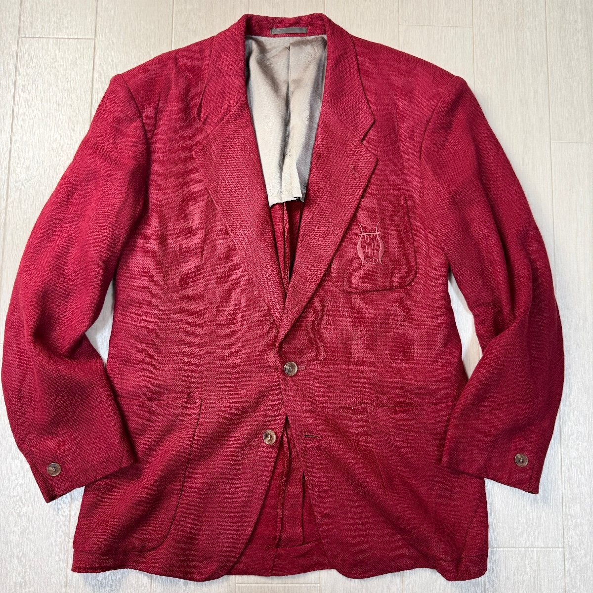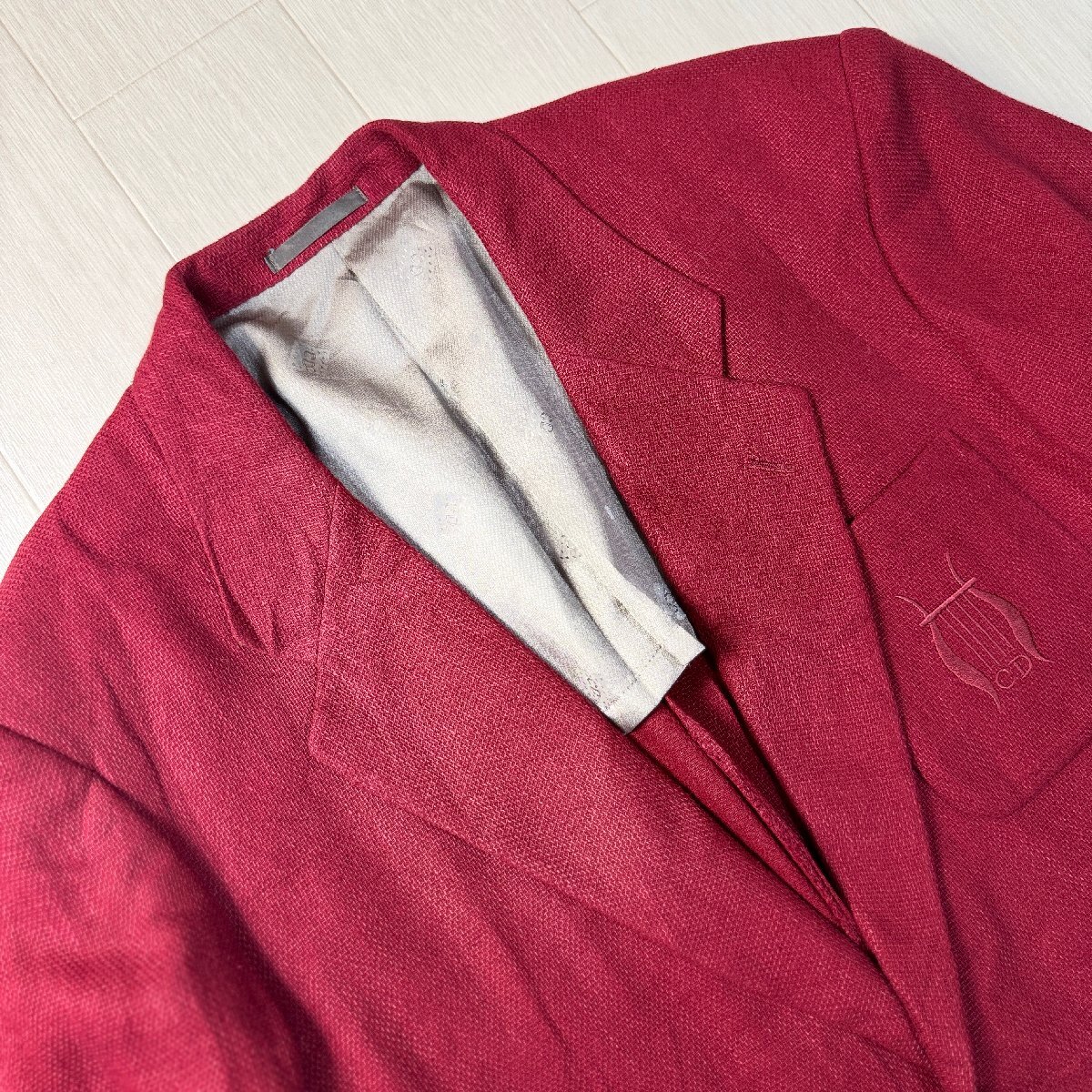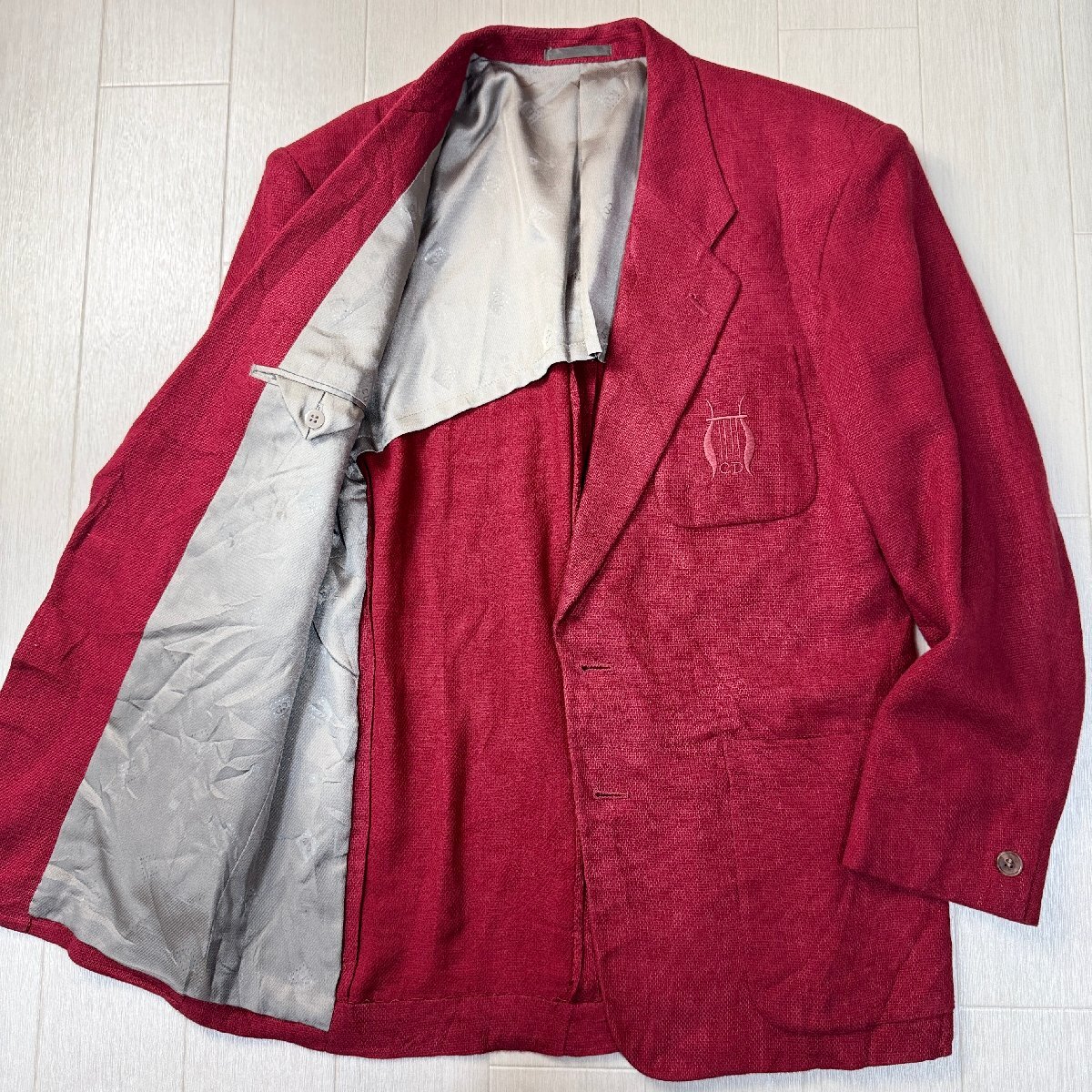 美品/Mサイズ★クリスチャンディオール/Christian Dior 清涼リネン×ウール テーラードジャケット シングル ブレザー 胸ロゴ刺繍 メンズ