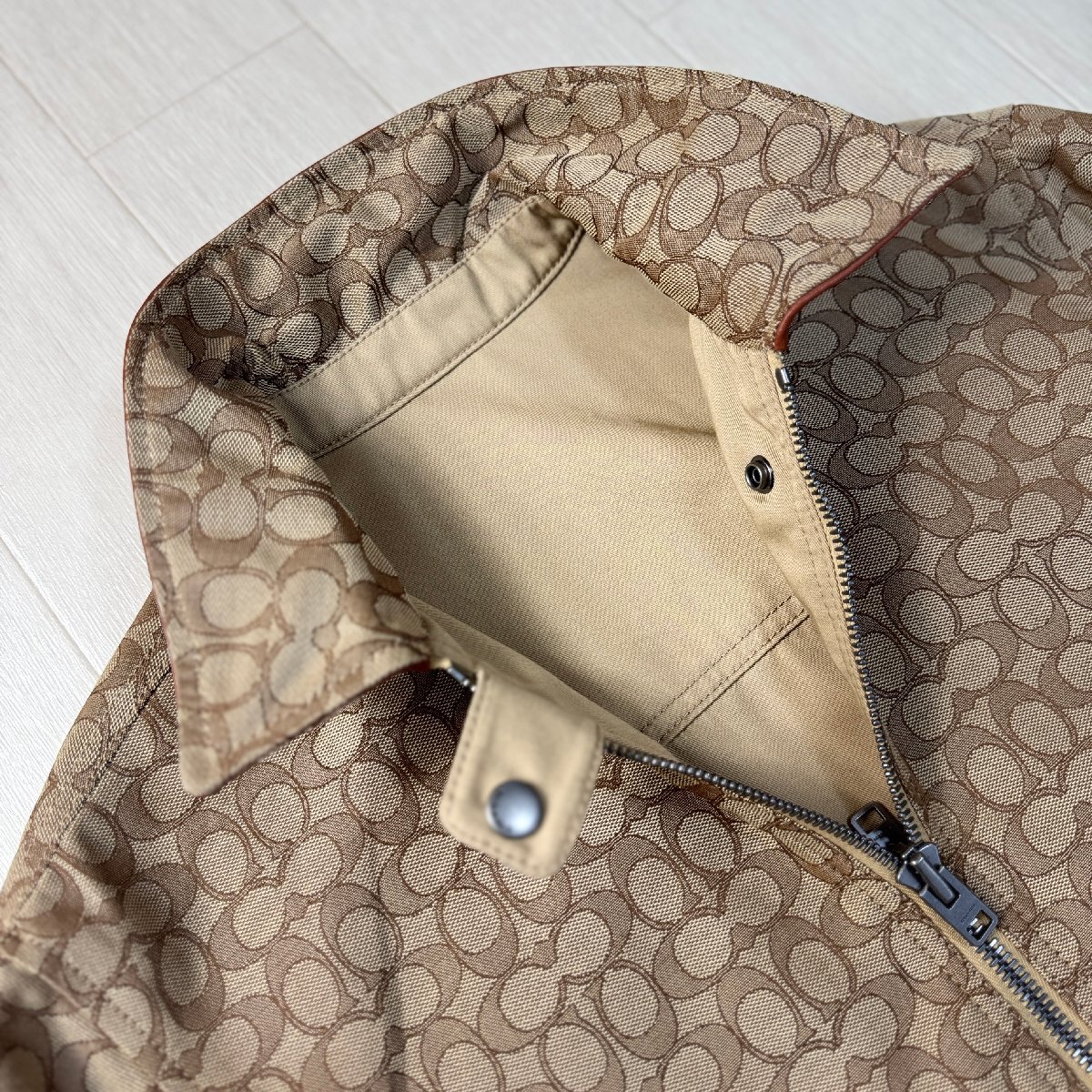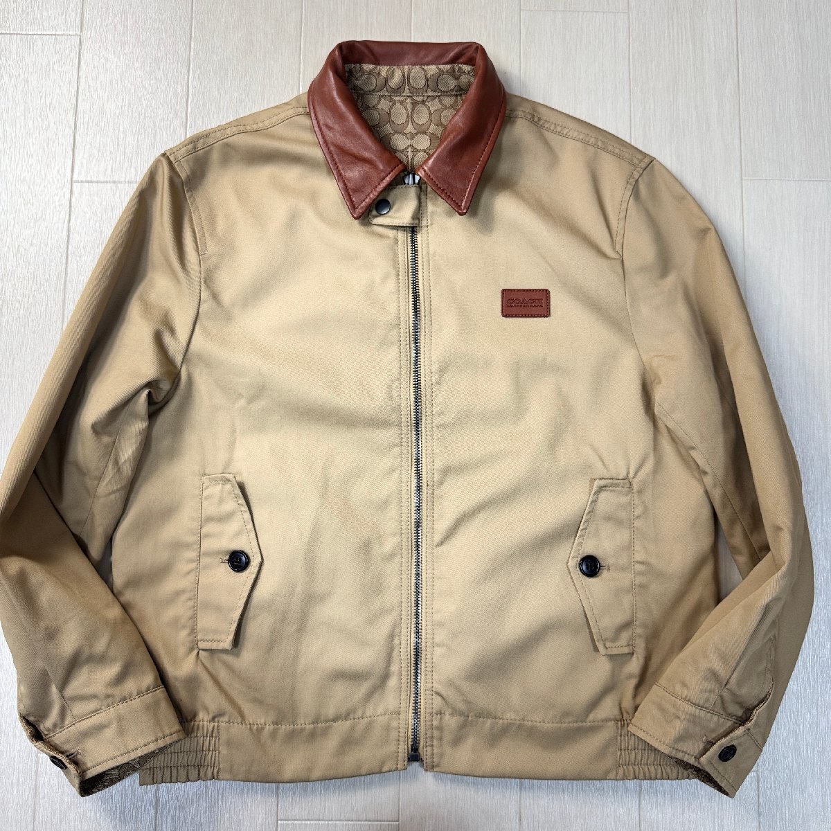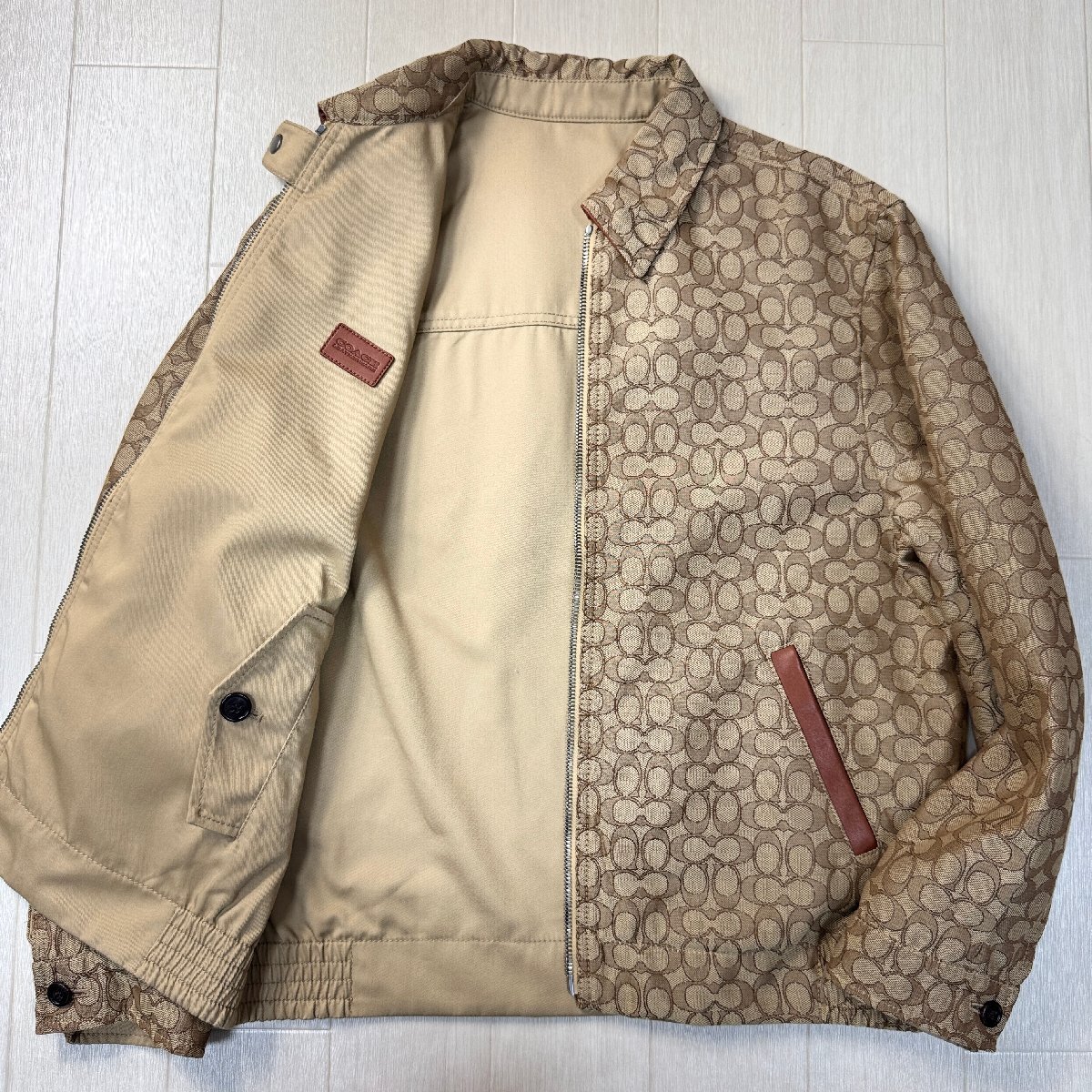 未使用並/L-XL相当★コーチ/COACH シグネチャー総柄 リバーシブル ブルゾン ジャケット 部分レザー 牛革 ロゴワッペン メンズ ベージュ