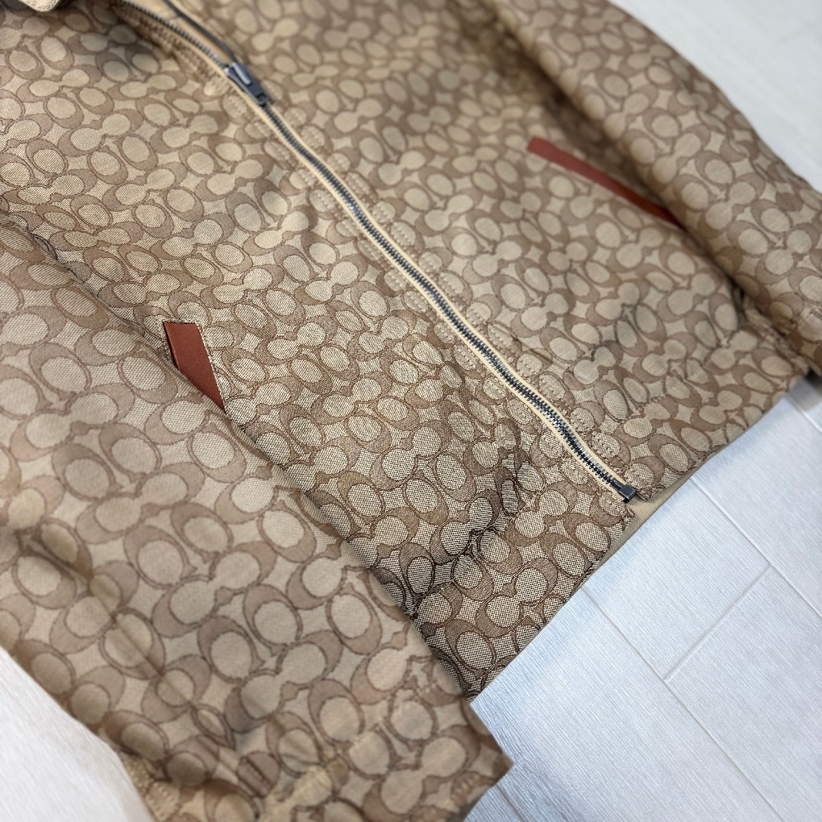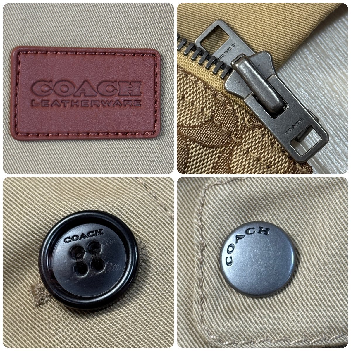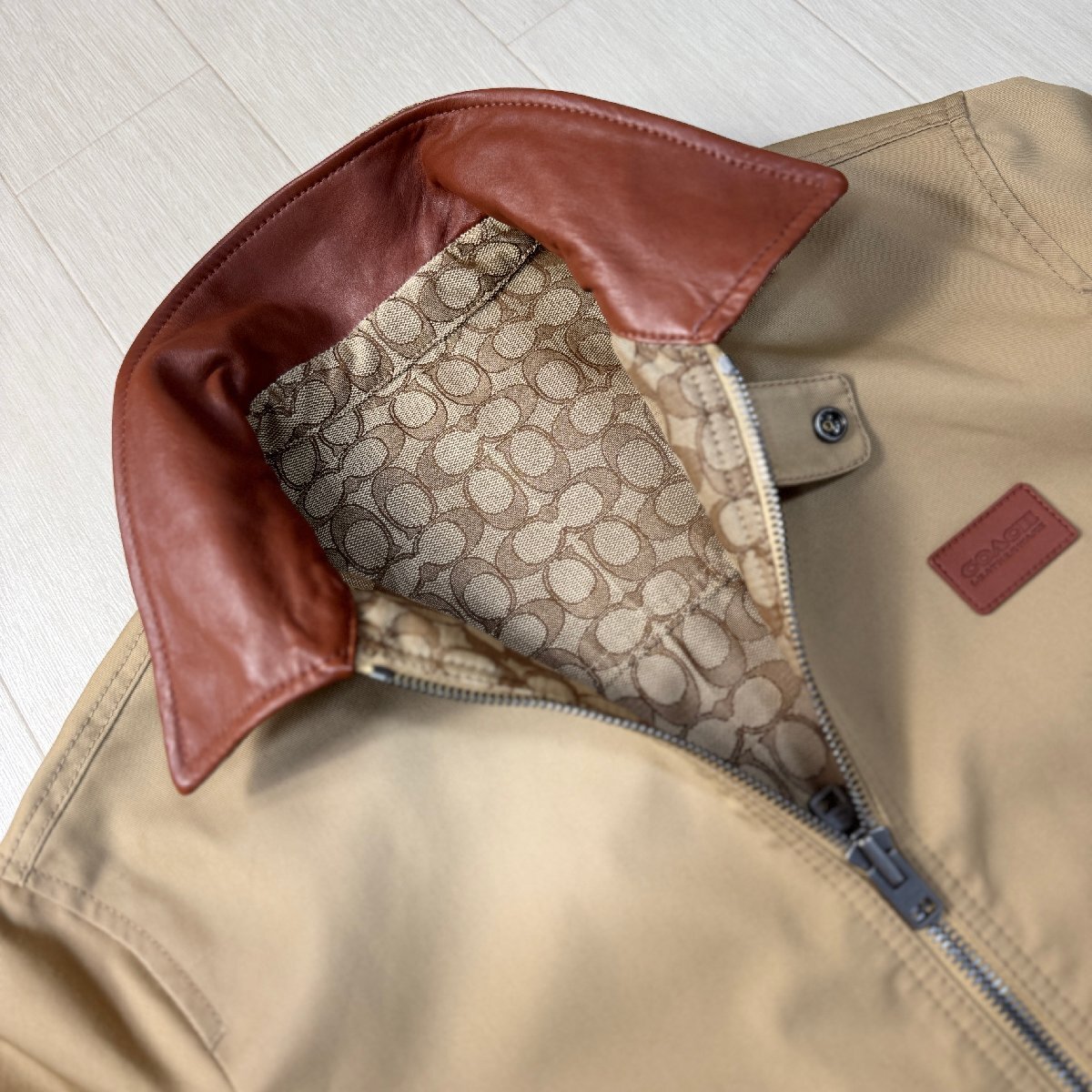 未使用並/L-XL相当★コーチ/COACH シグネチャー総柄 リバーシブル ブルゾン ジャケット 部分レザー 牛革 ロゴワッペン メンズ ベージュ