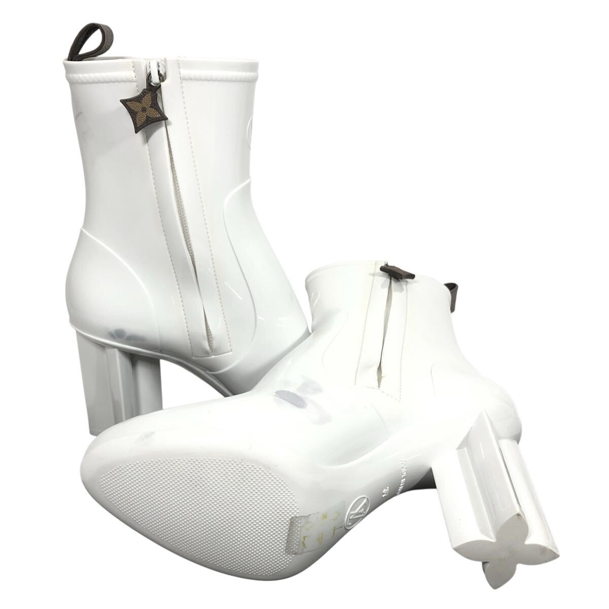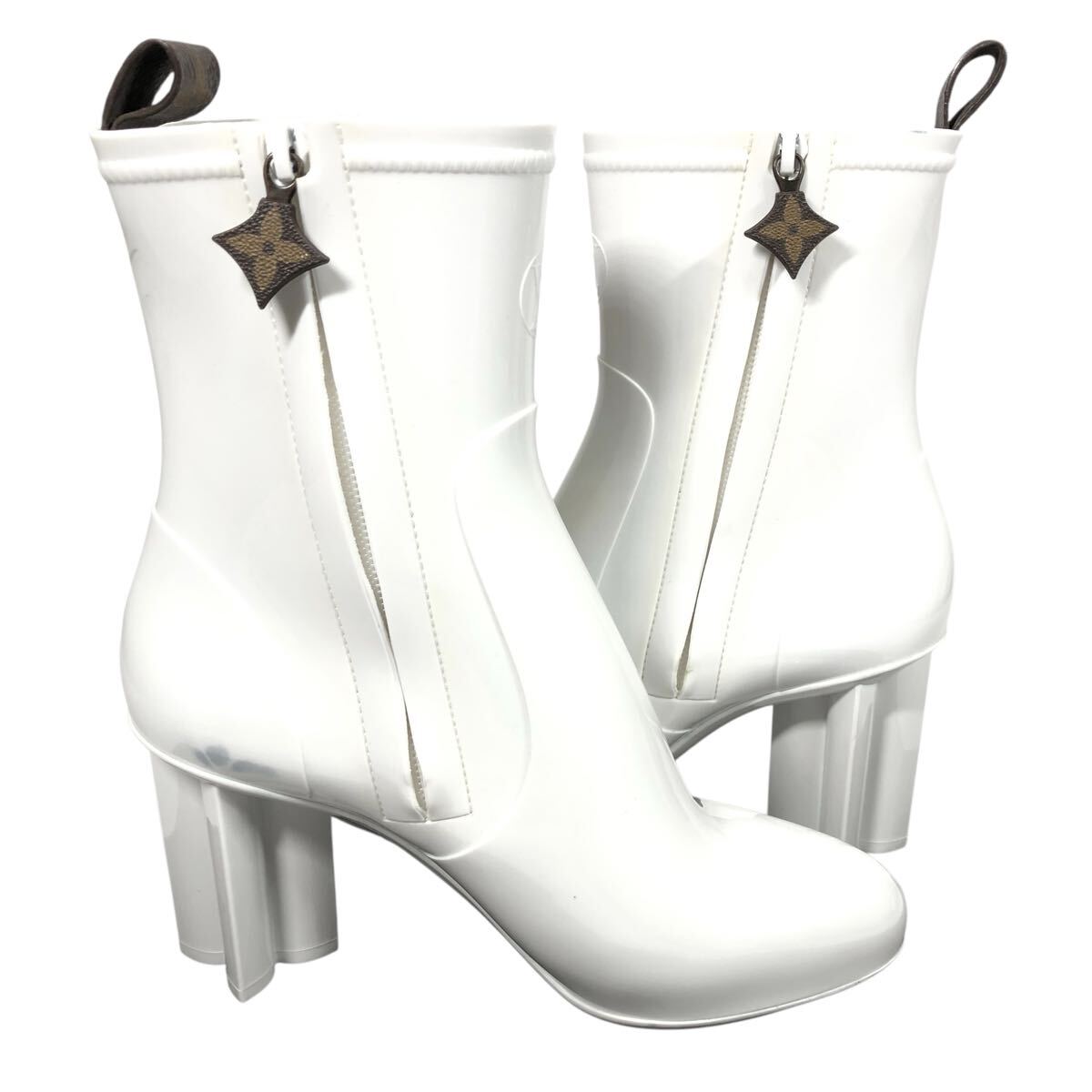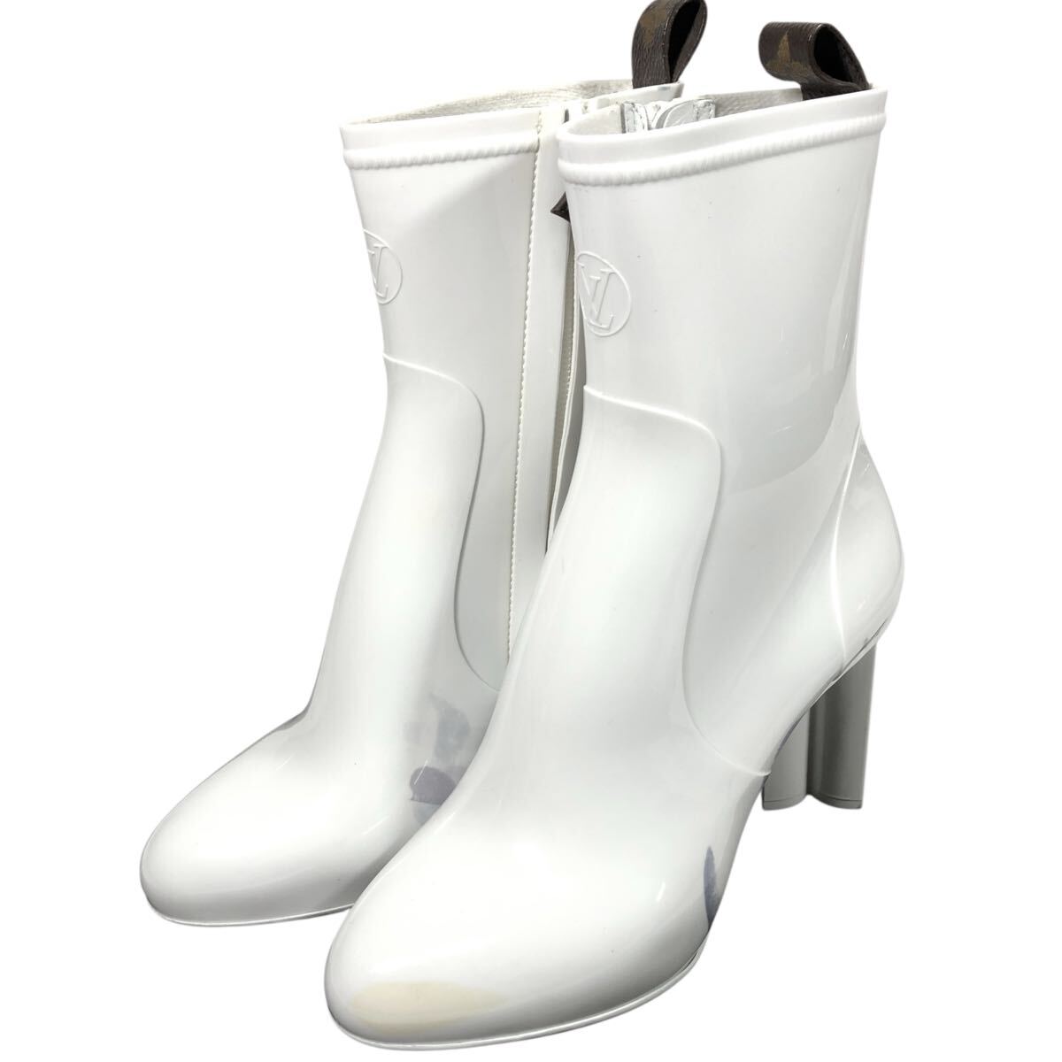 未使用【ルイヴィトン】本物 LOUIS VUITTON 靴 24cm シルエットライン モノグラム レインブーツ シューズ 長靴 ラバー レディース 伊製 37