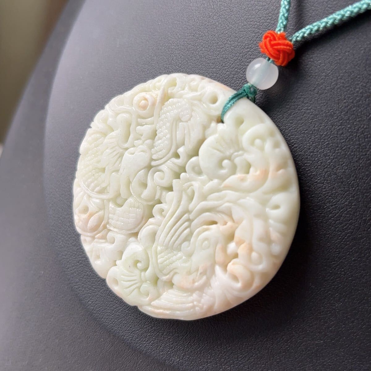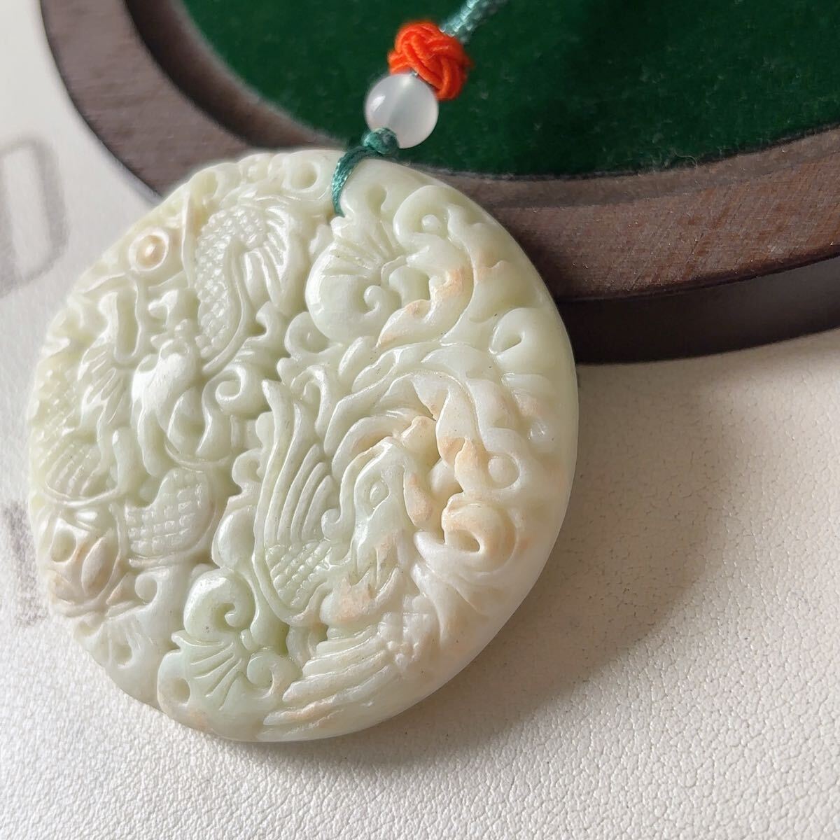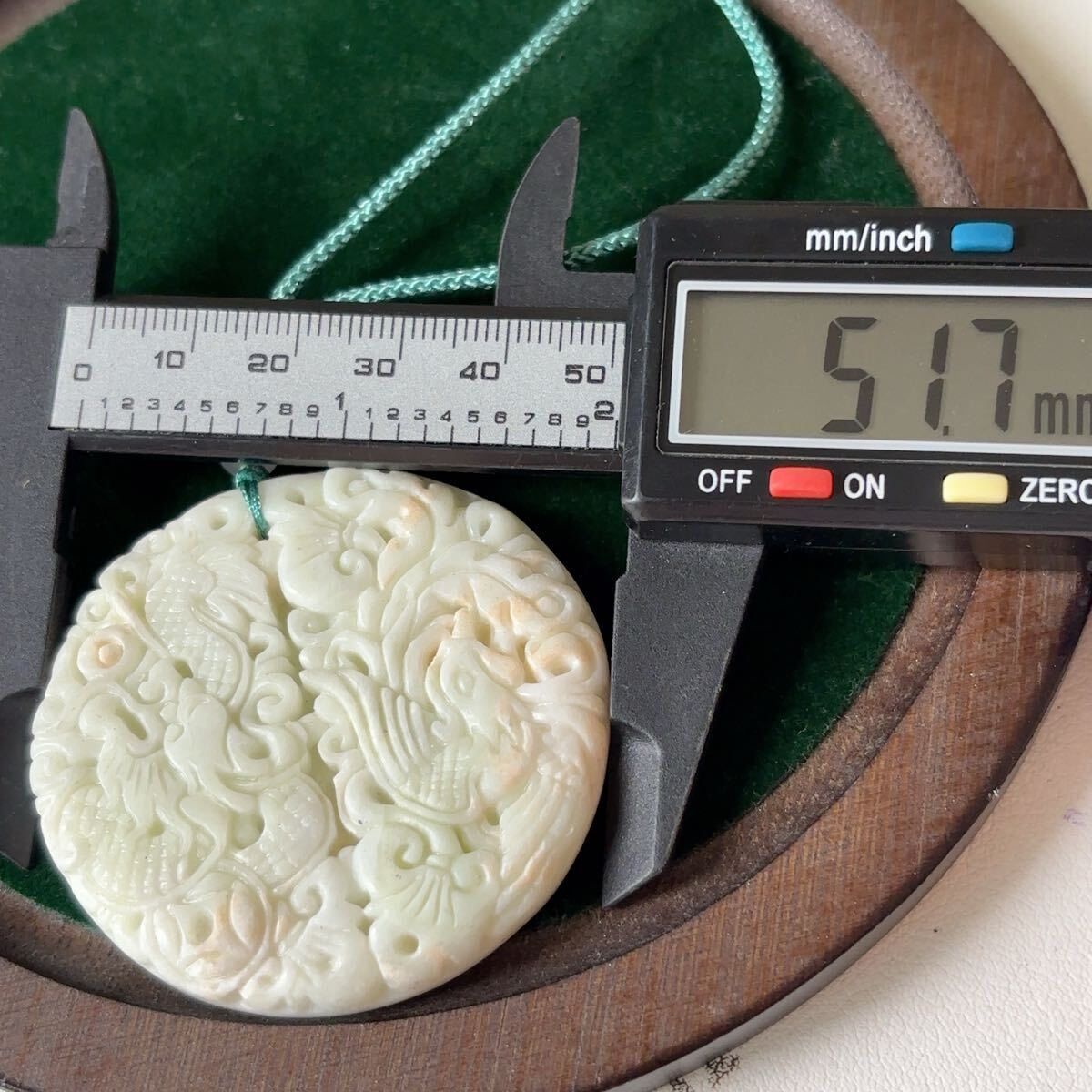 ♪藍田玉♪翡翠・ヒスイ♪龍鳳形彫刻♪ネックレス♪ペンダント♪パワーストーン♪天然石♪巾着袋付き♪プレゼントにも P409201