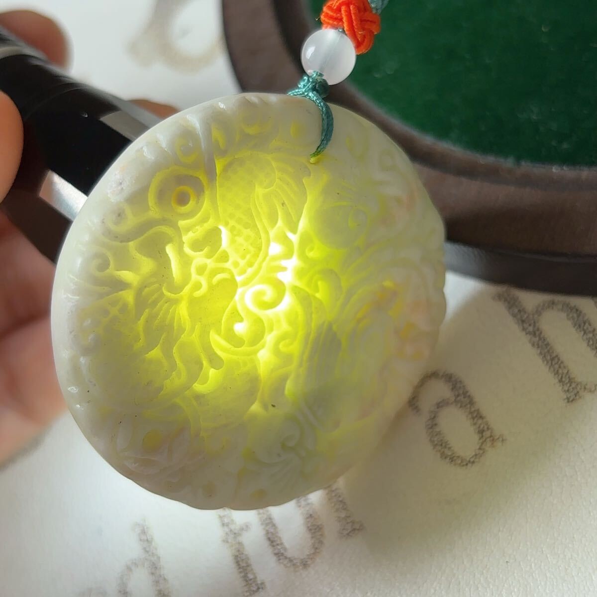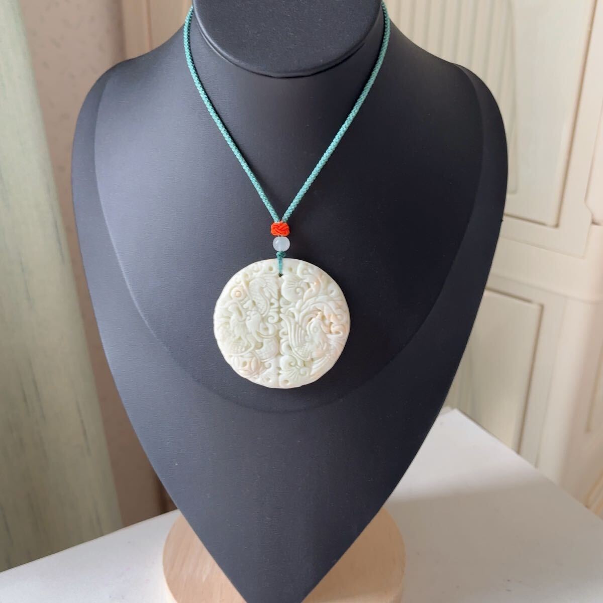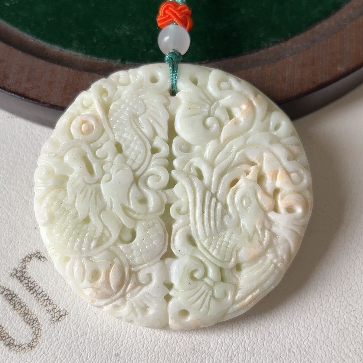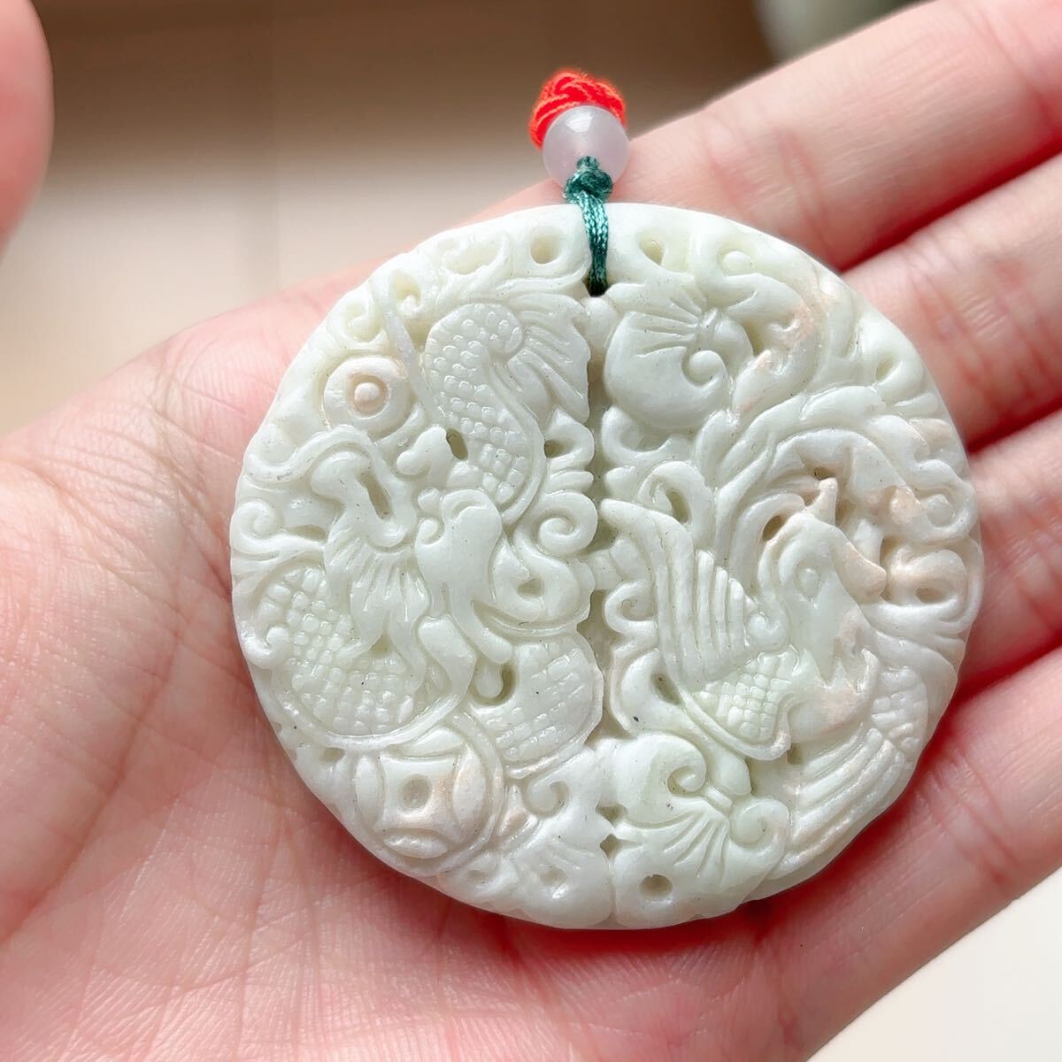 ♪藍田玉♪翡翠・ヒスイ♪龍鳳形彫刻♪ネックレス♪ペンダント♪パワーストーン♪天然石♪巾着袋付き♪プレゼントにも P409201