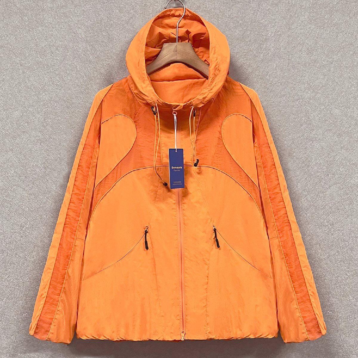人気・ジャケット 定価6万◆Emmauela・イタリア・ミラノ発◆防風 柔らか 薄手 フード付き カジュアル アウター ブルゾン 春秋 M/46