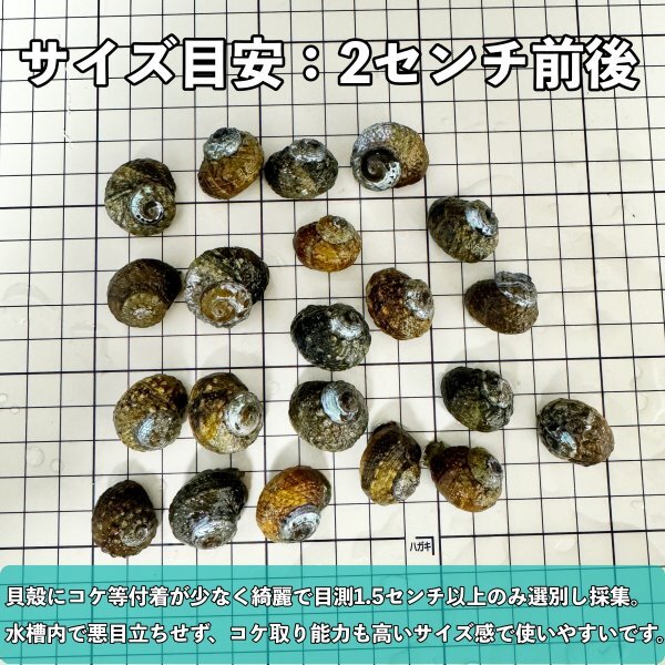 海水水槽のコケ取り貝として、カワハギやチヌ等の貝を食べる魚の生き餌など様々な用途に使えます。食用ではありません。