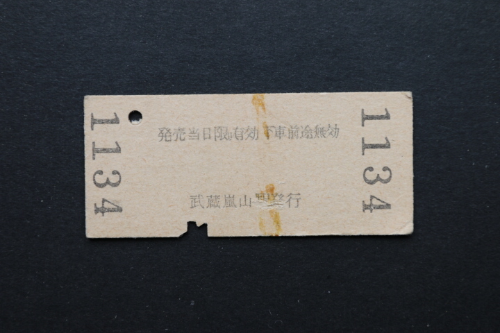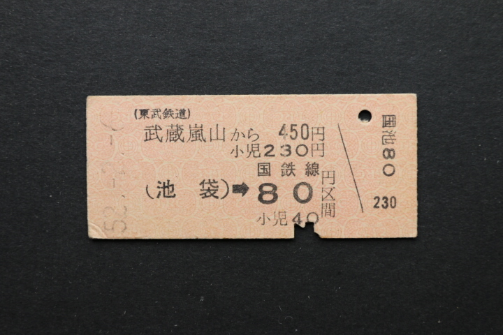 東武鉄道 乗車券 武蔵嵐山から 450円 池袋→80円区間
