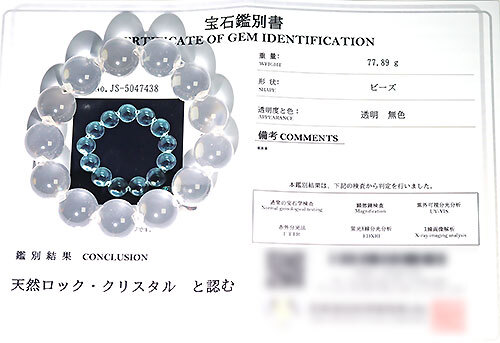 【 天然石 パワーストーン アクセサリー ファッション 雑貨 】 新作の泡泡水晶の登場です。 穴を両サイドに開けることにより貫通穴を見えなくし水晶の透明度を引き出したブレスレットになります。 【注意】 ※石の特性をご理解の上ご購入下さい。天然石加工によるの小さい凹み、細かい傷、内包物が含まれる場合がございます。ご了承の上にご購入してください。※ゴムが伸びにくい設計になっていますので着けるときに引っ張りゴムが切れやすいのでご注意ください ※鑑別書写真は同じロット内のブレスレットを鑑別した結果になりますので、鑑別書はついていません。 ※写真は15mm玉を使用しています。 | |||