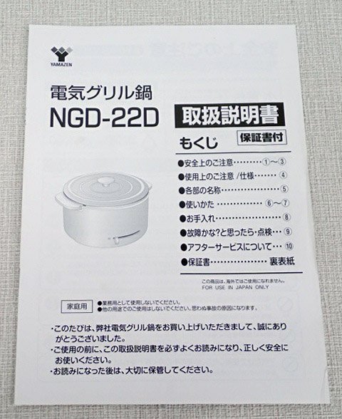 ●●MMT● 【展示 超美品(プラスチック欠けあり)・付属品完備】 電気鍋(IH・直火対応品) グリル鍋 N.GD-2.2D(W) (管理MJ-436)