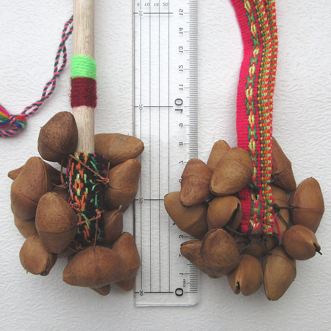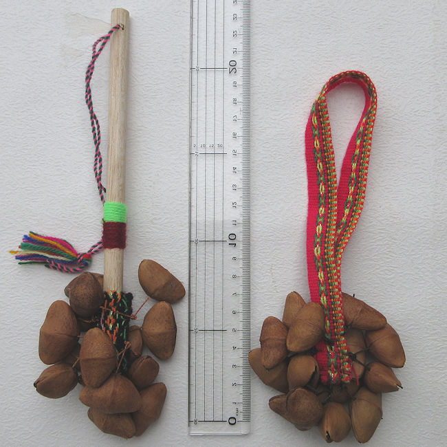 木の実(棒付き・ひも付き)から作られた民族楽器のチャフチャス・チャクチャス楽器です。