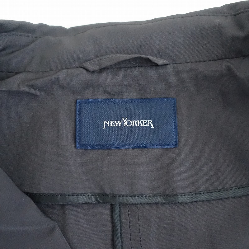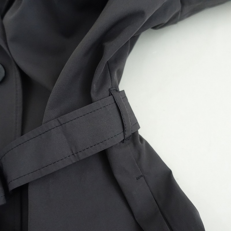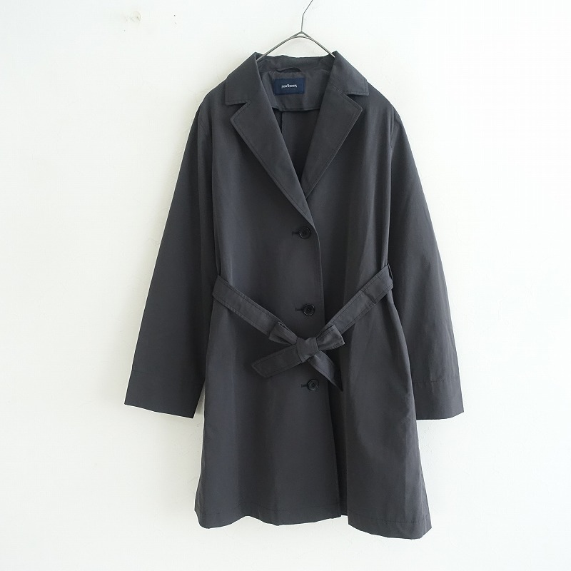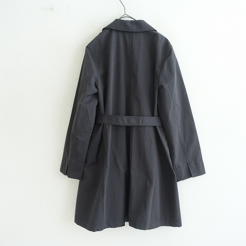 NEWYORKERのスプリングコートです。カラーはチャコールグレーです。ポリエステルとコットンの艶感がある高密度に織られた薄手の生地を使用。透け感はございません。テーラードカラーのベルテッドコートで、袖口と後裾にはベントがあしらわれております。両サイドにシームポケットがございます。 |