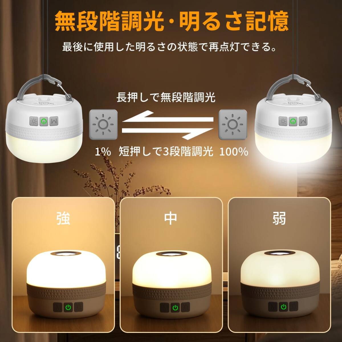 【輝度記憶、緊急SOSモード】LEDランタンがオフになった後、再度オンにすると、前回使用した明るさが自動的に復元され、再調整の手間を省きます。さらに、このLEDランタンは「M」ボタンで、常時点灯、点滅、呼吸灯の3つのモードに切り替え可能です。赤色の光を選んだ後、「M」ボタンを押して点滅モードに切り替えると、緊急時にSOS信号として使用でき、安全を確保します。