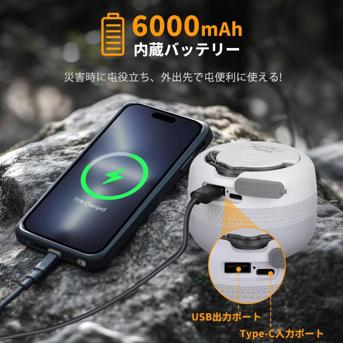 【IPX5防水・防災、】IPX5の防水性能を備えており、雨天や湿気の多い環境でも安心して使用できます。アウトドア活動や緊急時に最適。さらに、停電や自然災害などの緊急時には、SOS信号の点滅モードで迅速に周囲に注意を喚起し、安全を確保できます。