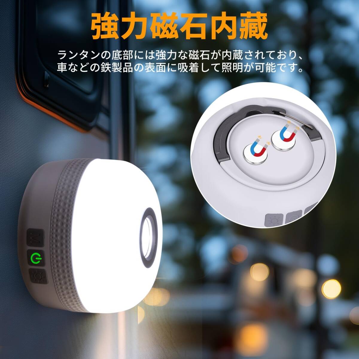 【強力磁石内蔵、吊り下げ可能】底部に強力なマグネットが内蔵されており、鉄製の面に簡単に取り付けることができます。車内やテントの横、冷蔵庫など、さまざまな場所で使用可能です。また、底部には収納式のフックがあり、タープやテント内に吊るして使用することができます。軽量でコンパクトなデザインにより、持ち運びやすく、アウトドアや緊急時にも最適です。