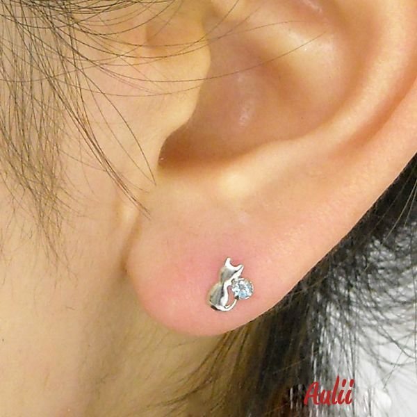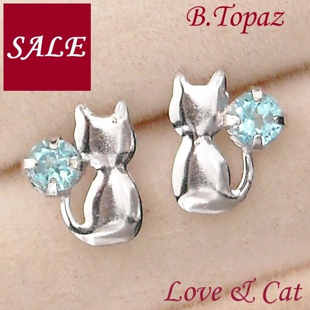 ブルートパーズ ピアス 天然石 プラチナ 11月誕生石 レディース 50代 40代 60代 30代 20代 猫 ねこ ネコ アニマル 一粒 pt900 ギフト