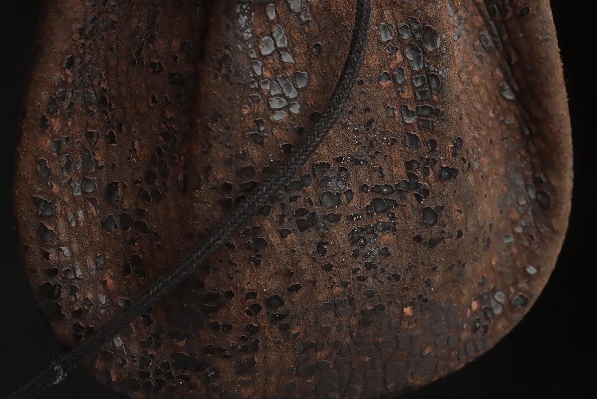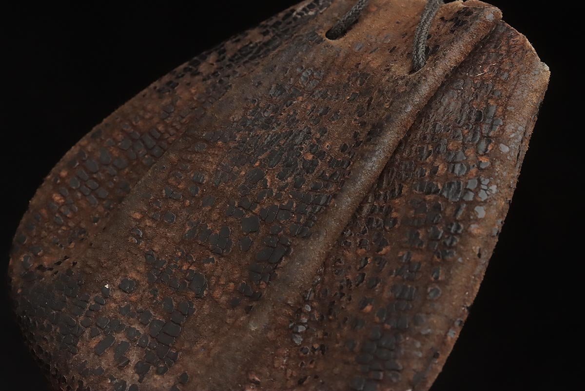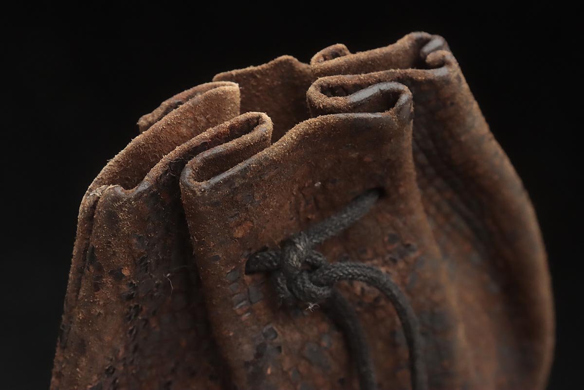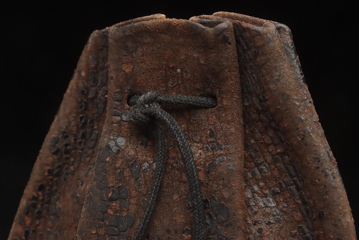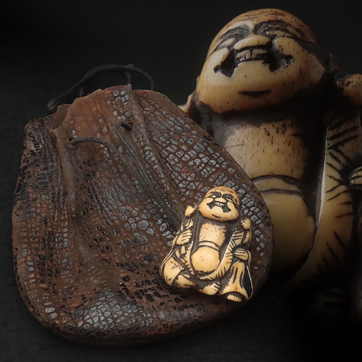 | ◆ 時代提げ物 古骨布袋根付 革製 腰下巾着・古革腰下巾着 古根付 和装小物 腰提げ 装飾具 古美術 ◆